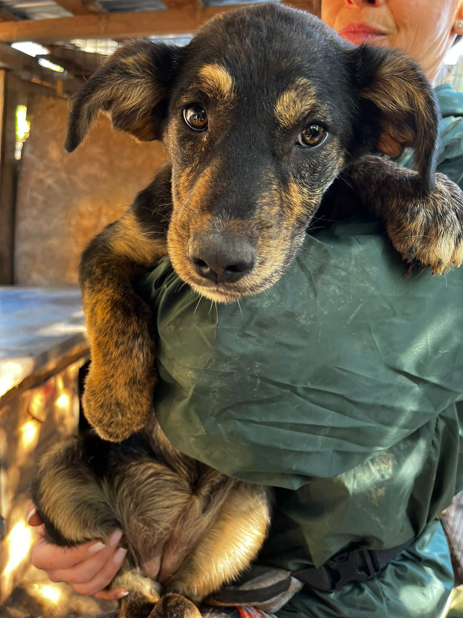 Virginia ist eine hübsche, mittelgroße Hündin geworden. Wir konnten sie prima aufs Hüttendach stellen und festhalten. Sehr ungewohnt für sie und hat sie dennoch toll gemacht. Im Idealfall mit einem souveränen Zweithund würde Virginia schnell auftauen und zu einer gut sozialisierten Familienhündin werden.