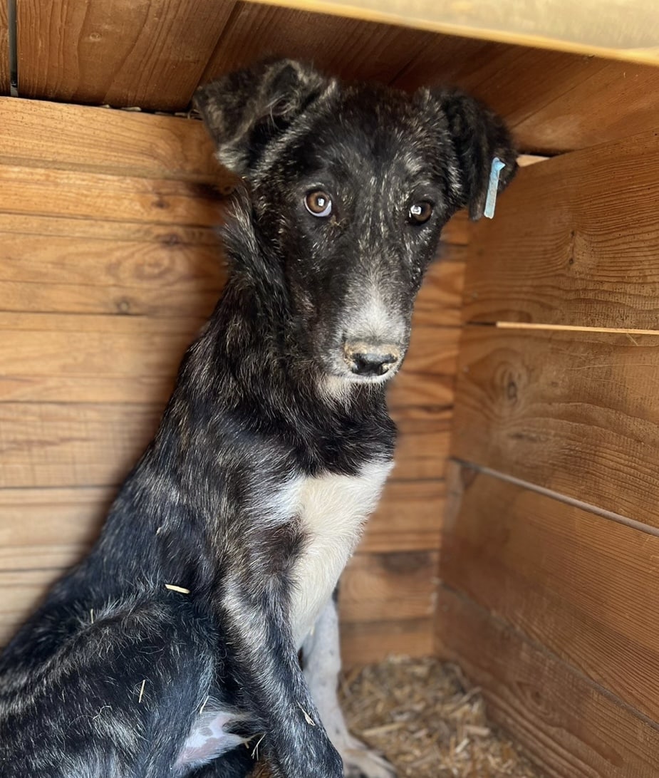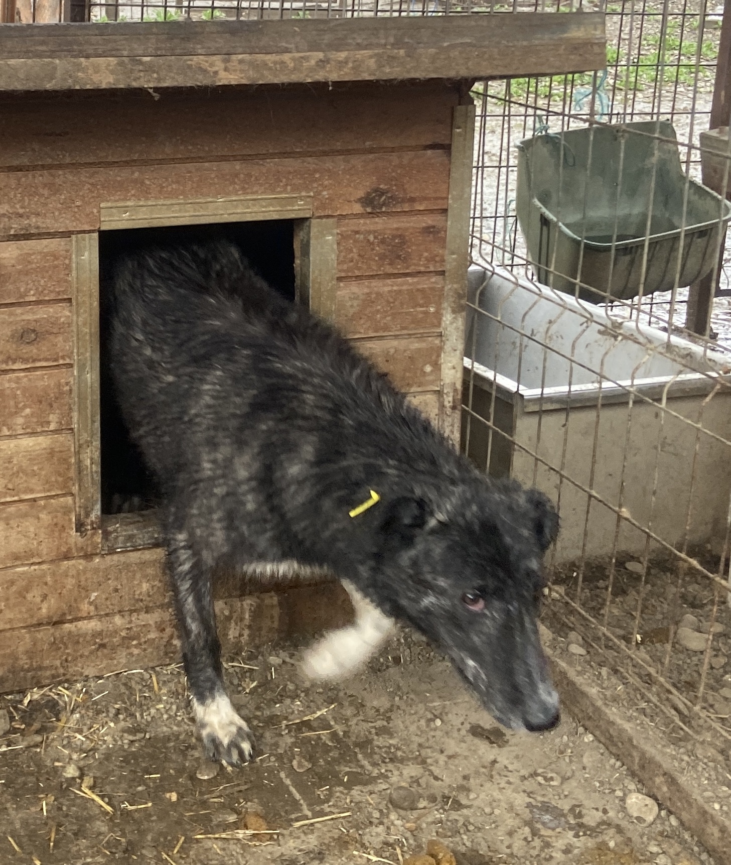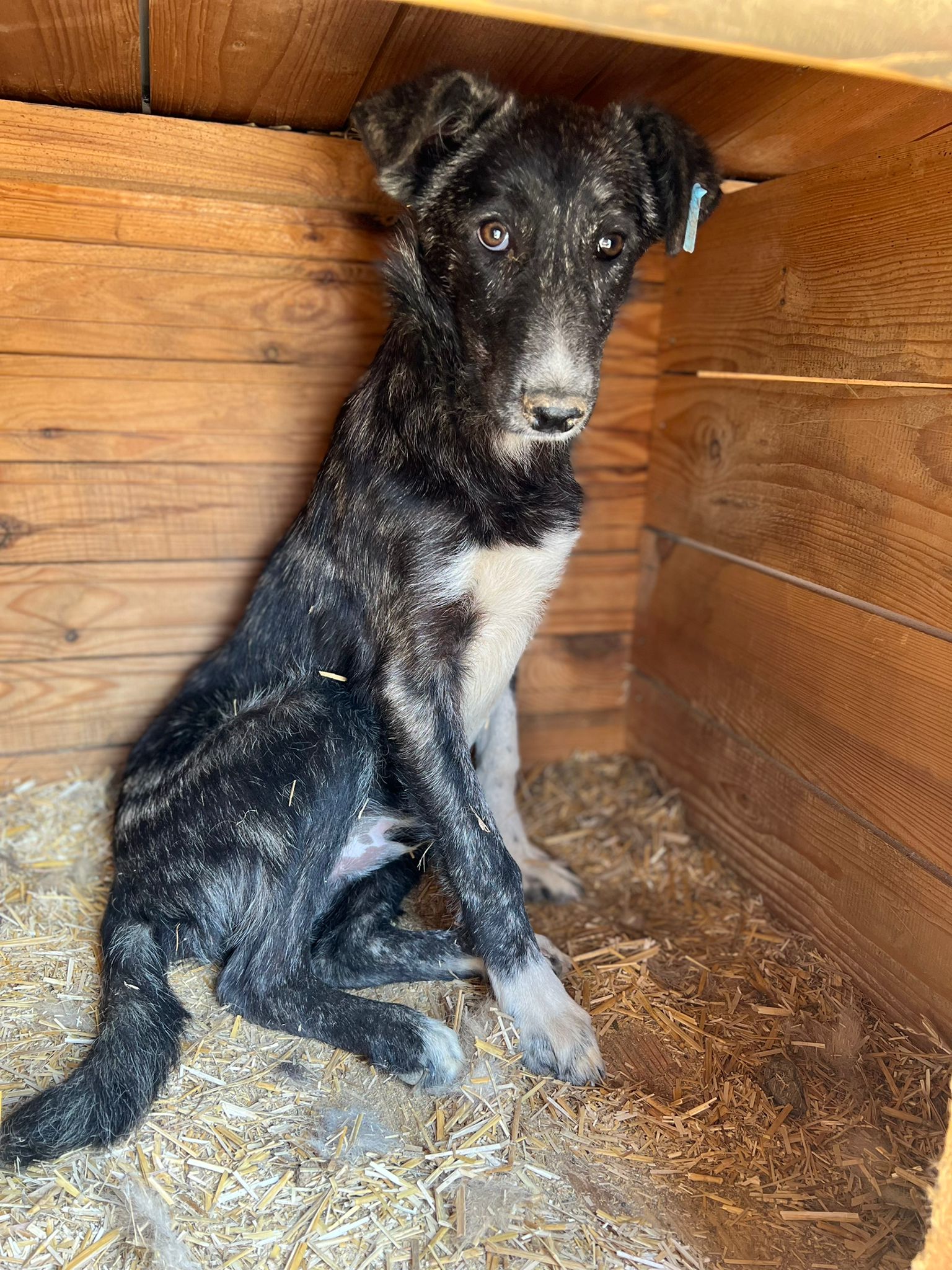 VITO ist leider weiterhin sehr unsicher und scheu. Die meiste Zeit während unseres Besuches verbrachte er in seiner Hütte. Wenn er diese verließ, lief er nur hektisch herum, ließ sich weder anfassen noch war er an unseren Leckerlies interessiert. Da er mit mehreren Hunden in einem Kennel sitzt, schätzen wir in verträglich ein.