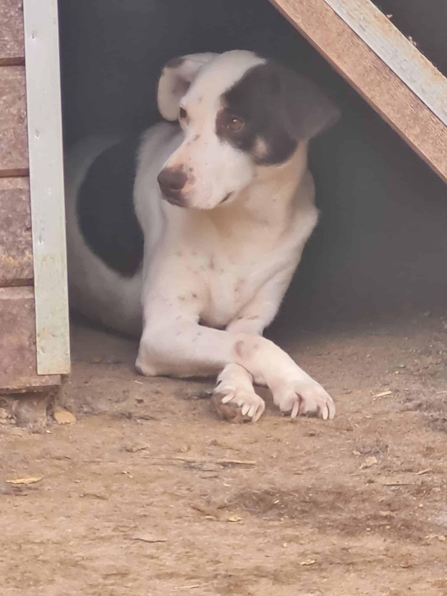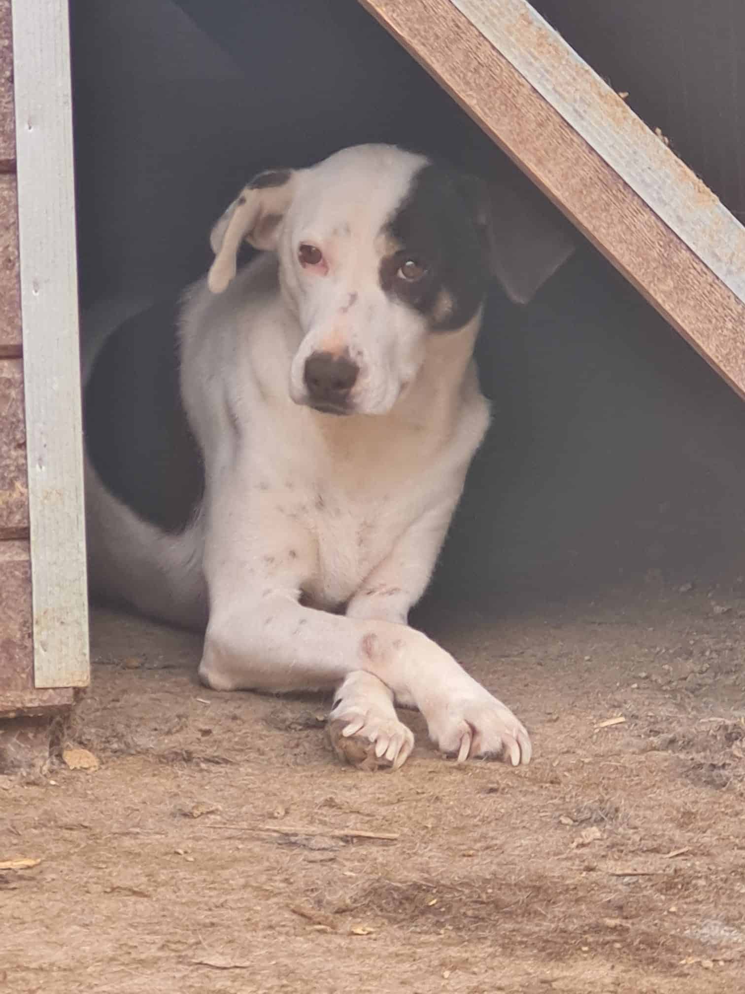 Update 04/23: Völlig fertig und müde sitzt die liebe Vivika hinter der Hütte. Seit über zwei Jahren sitzt sie hier nun und Hoffnung hat sie keine mehr. Sie ist unsicher, aber nicht panisch. Müsste endlich raus aus diesem Stress. Andere souveräne Hunde wären sehr wichtig für sie.