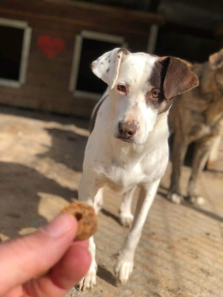 Update 10/23: Vivika ist eine ausgesprochen hübsche Hündin. Sie war auch sehr interessiert an unseren Leckerchen. Sie aus den Fingern zu nehmen, dafür fehlte ihr der Mut. Aber sie kam fast bis zu uns um sie vom Boden zu nehmen. Viel Arbeit würde hier vor einem liegen, um sie in ein Familienleben zu integrieren, aber wir geben die Hoffnung für Vivika nicht auf. Ein Zweithund wäre jedoch ein Muss.