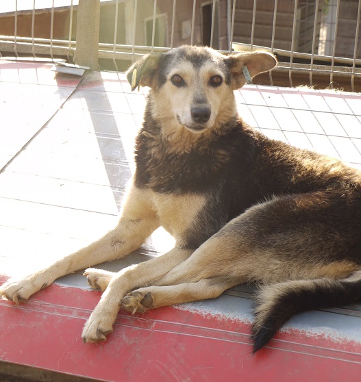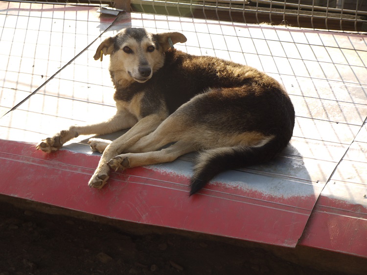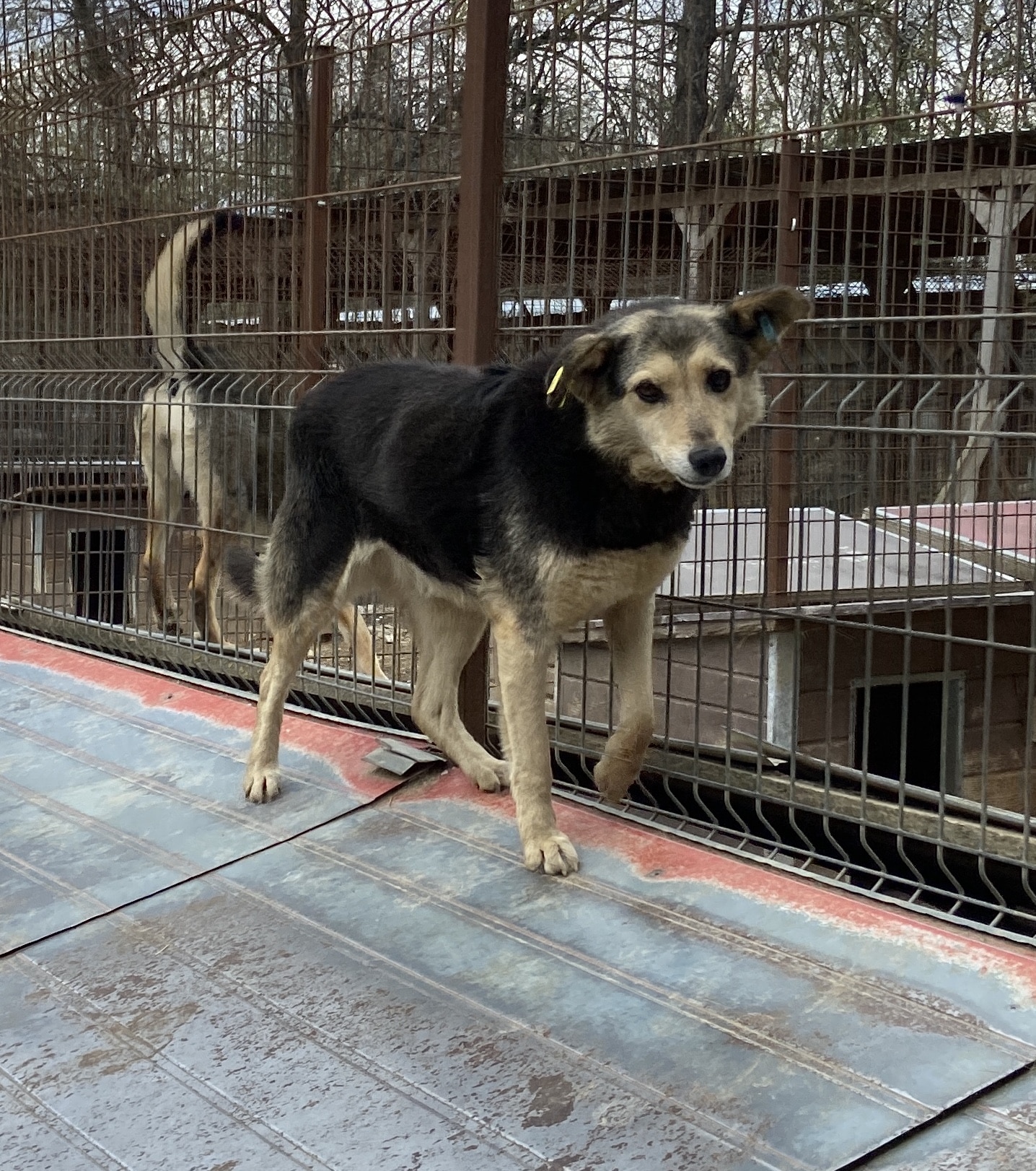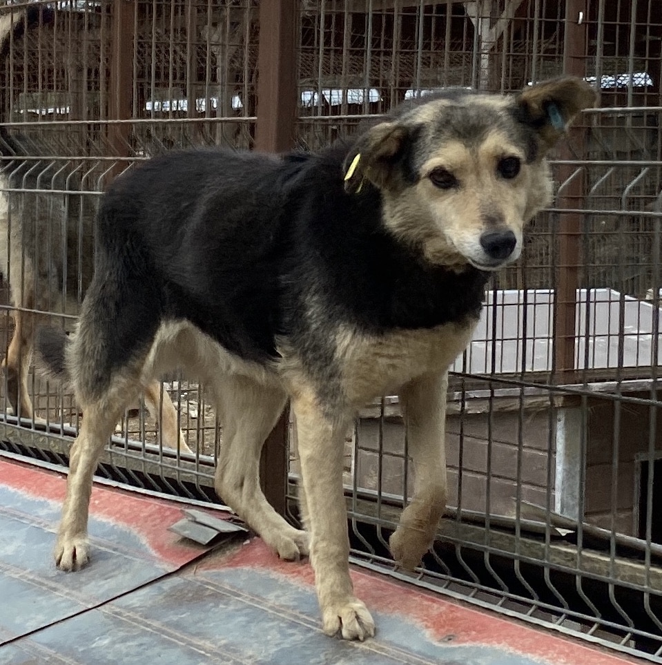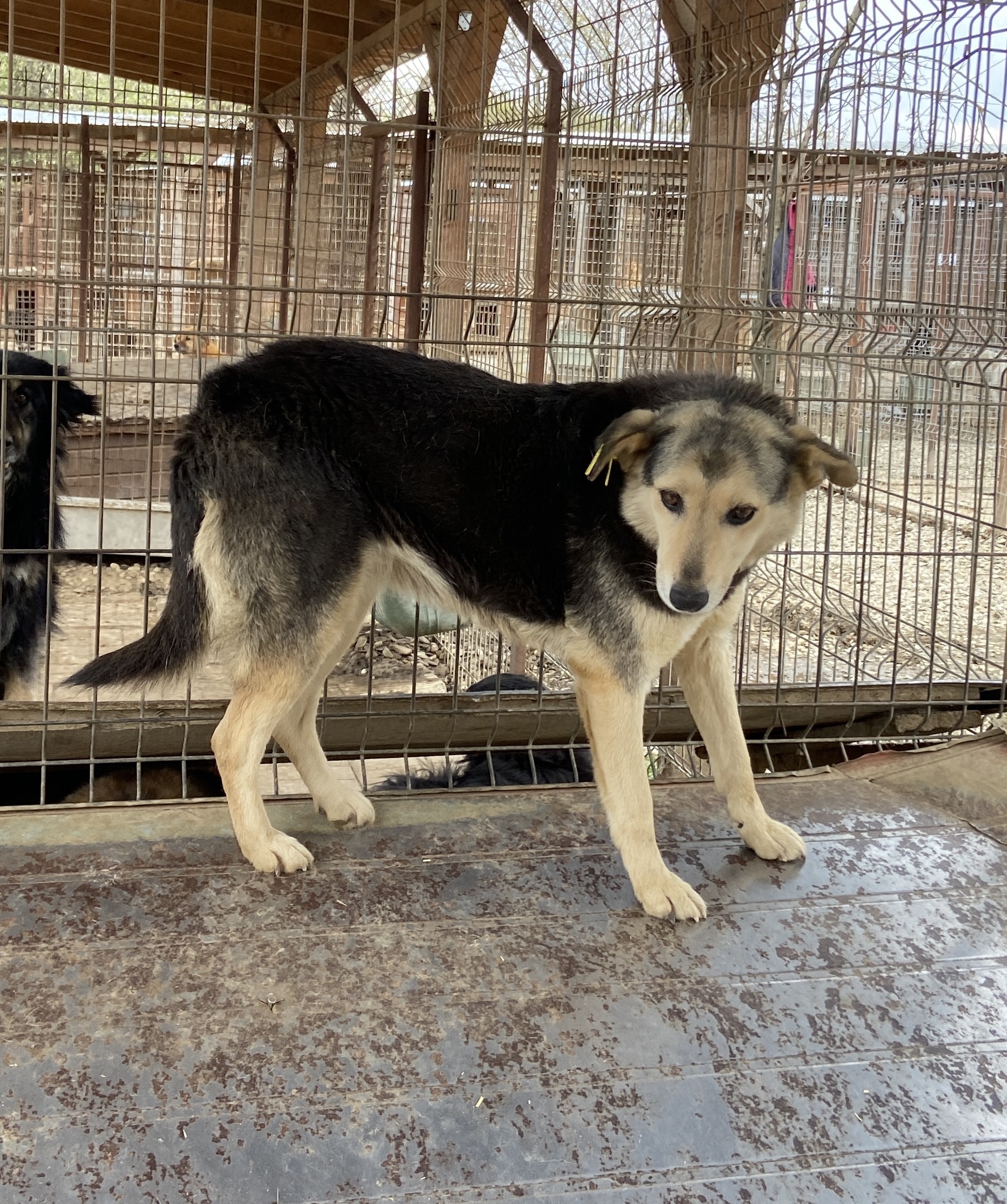 VRONI mit den niedlichen Ohren sitzt aktuell in einem sehr vollen und daher wuseligen Kennel. Ihre sichere Hütte verlässt sie kaum – der Shelterstress scheint ihr weiterhin zu schaffen zu machen. Unser Tun beobachtete sie uns aus sicherer Entfernung. Wir bedrängten sie nicht und konnten sie daher leider nicht streicheln. Auch ihr Gangbild konnten wir nicht einschätzen.