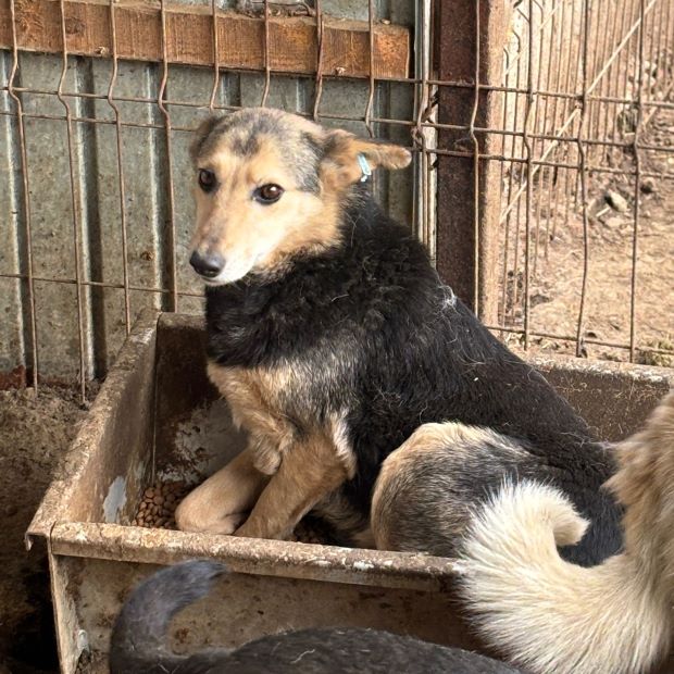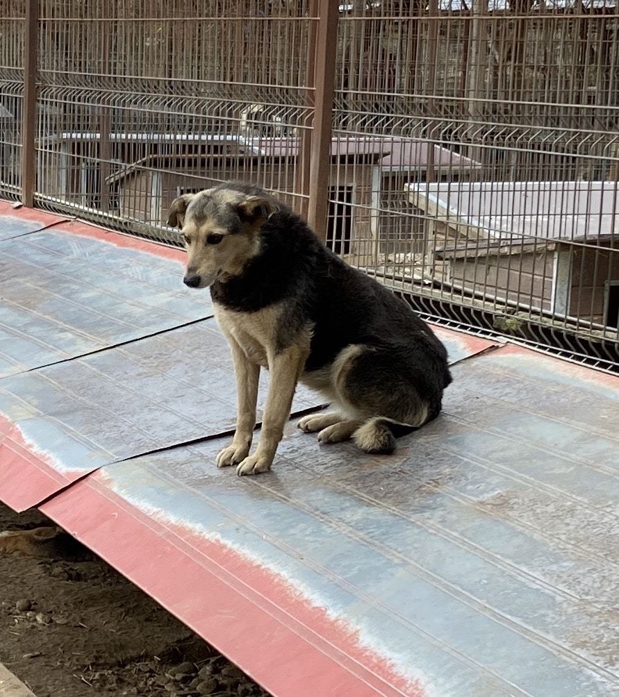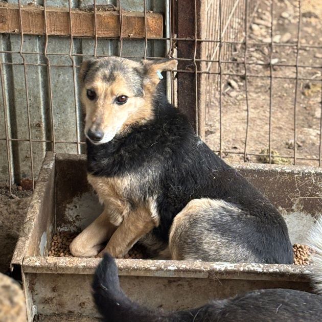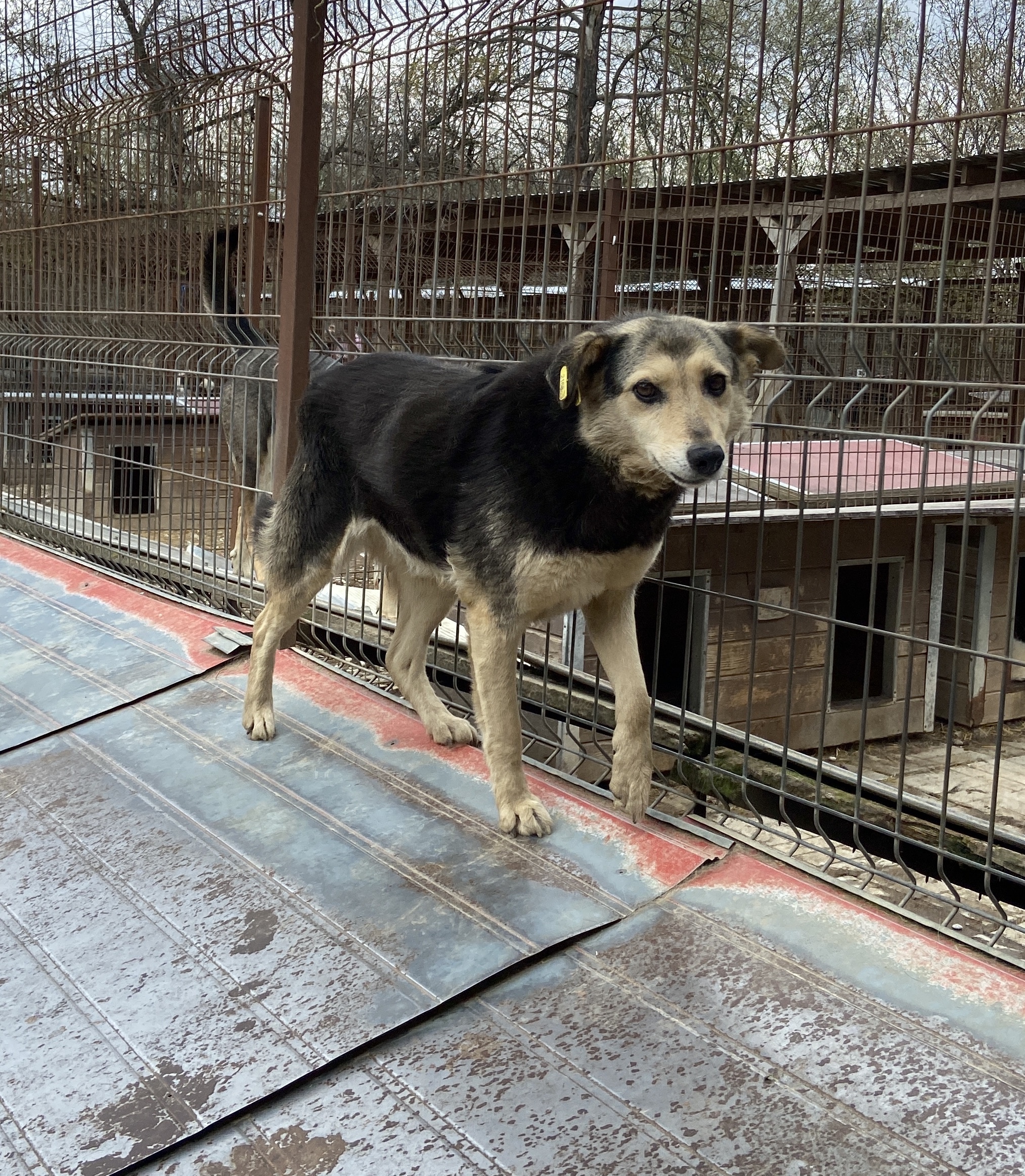 VRONI saß in ihrer Hütte und wirkte mit der Kennelsituation überfordert. Sie zeigte sich neugierig und nahm Leckerlis, die wir ihr hingeworfen haben. Sie ist nicht anfassbar, weicht aus, da sie durch die Sheltersituation ja leider fast keinen menschlichen Kontakt hat.