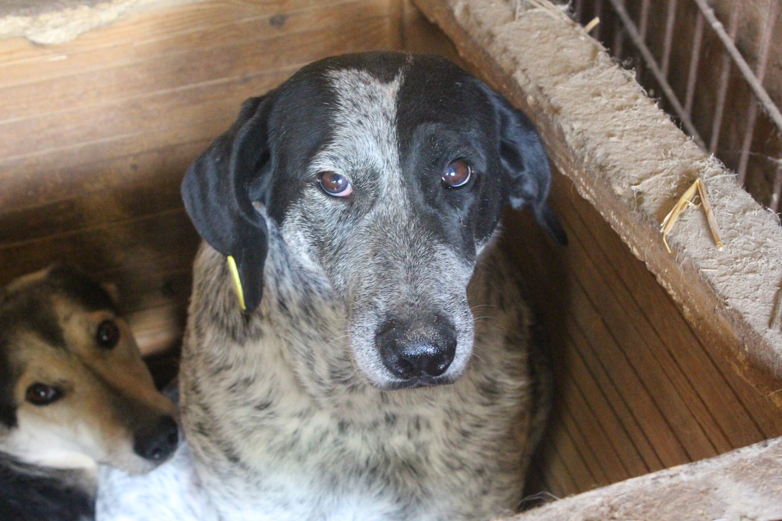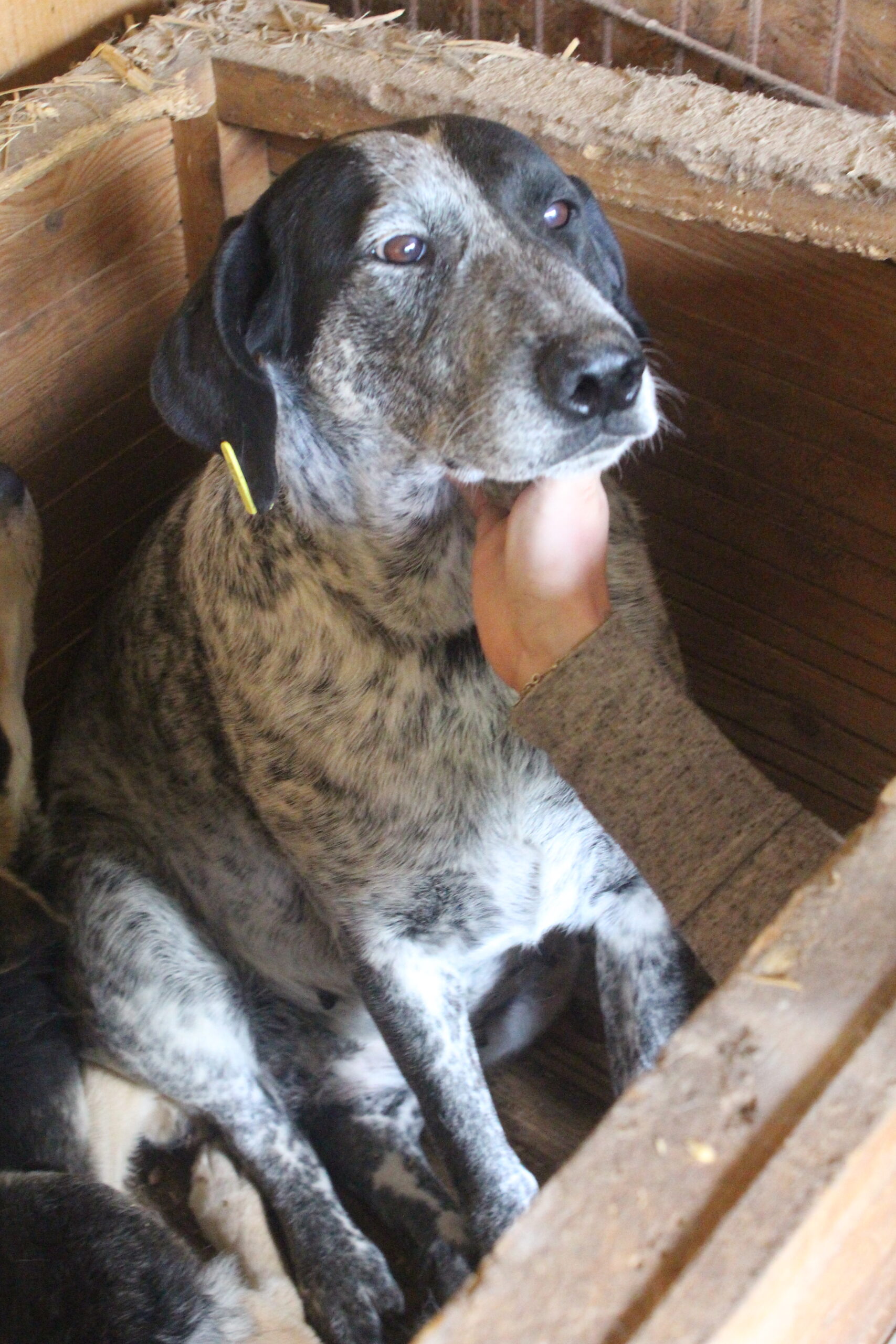 WANDA hat in ihrem wirklich winzigen Kennel die ganze Zeit in der Hütte gelegen. Hier hat sie sich von uns problemlos streicheln lassen. Sie wirkt resigniert und scheint vom Leben nichts mehr zu erwarten. Wir wünschen ihr sehr, dass sie bald gesehen wird.