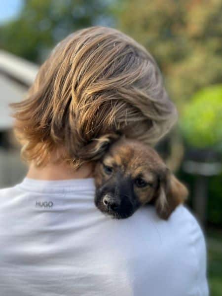 Wendy ist schon prima stubenrein, man muss sie gut beobachten und in Abständen raus lassen. Sie fährt im Auto mit, geht schon ganz manierlich Gassi, orientiert sich am Rudel und am PS Frauchen. Mit den Katzen sind wir auf gutem Weg; aktuell läuft sie ihnen (noch) hinterher; daran arbeiten wir, sie versteht schnell. Sie ist nicht futterneidisch, und man kann ihr gefahrlos Dinge wieder abnehmen.