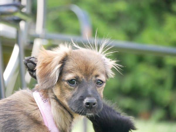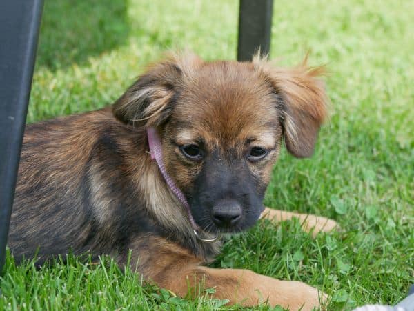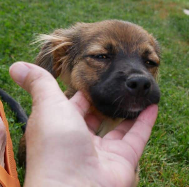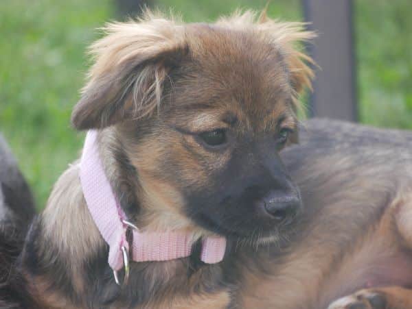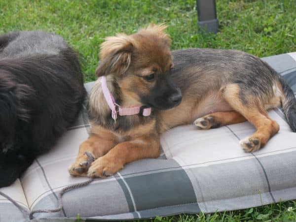 Was für ein Kleinteilchen ist hier gelandet. Kaum vorstellbar, wie sie in der harten Shelterzeit tapfer am Dasein festgehalten hat. Doch sie hat. Eine Strategie war sicherlich Unterwerfung und um Gnade bitten. Zum Glück ist diese Zeit vorbei und sie kann jetzt auf PS wie eine ganz normale Welpin mit ihren PS-Schwestern im Garten tummeln, im Körbchen schlummern, auf dem Krönchen kuscheln und für fröhliche Stimmung sorgen.