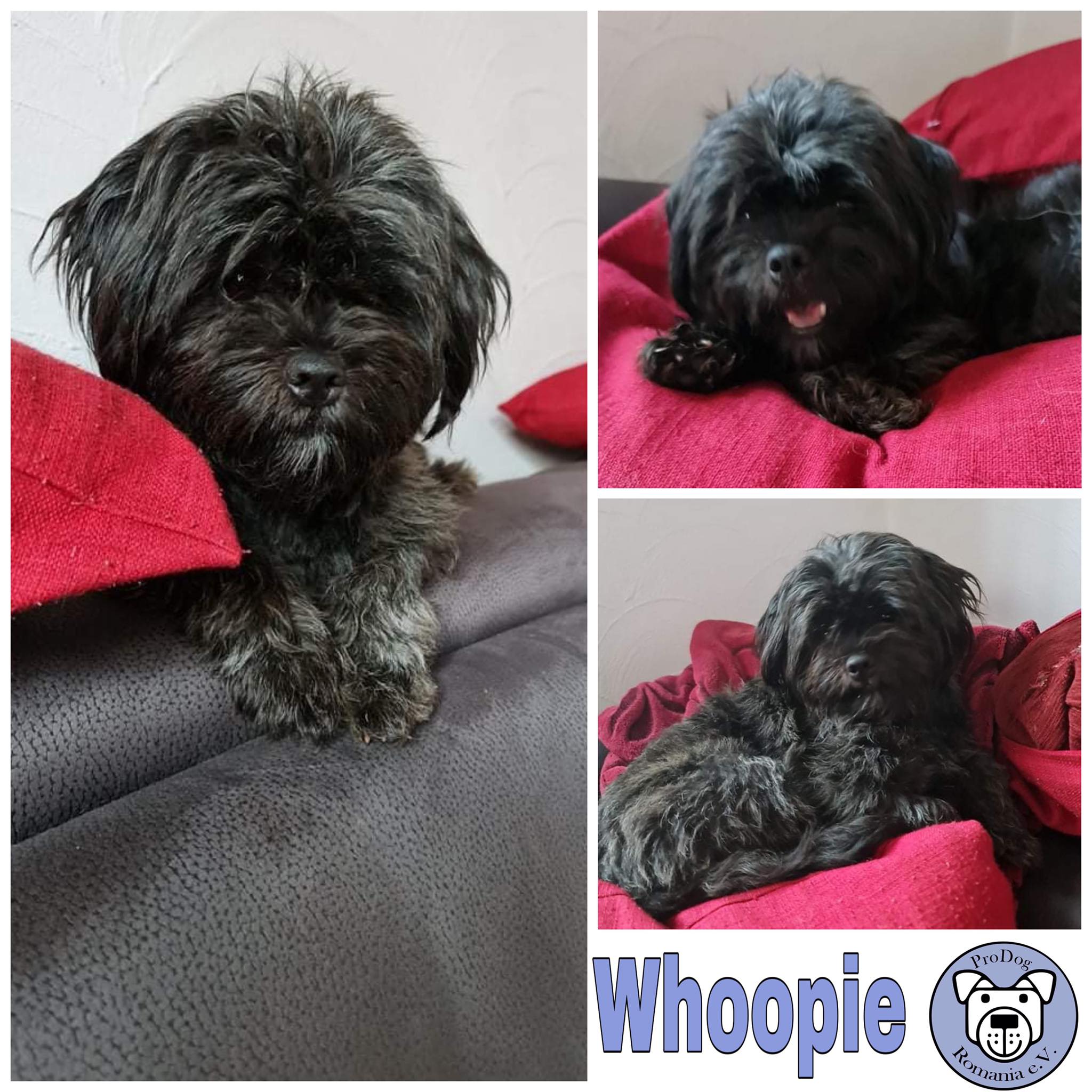 Whoopie ist ein absolutes, liebes sehr auf Menschen bezogenes Mädchen. Sie ist richtig verschmust und möchte immer bei ihren Menschen sein. Aktuell lebt sie mit 3 Hundekumpel, 1 Katze ihren Pflegeeltern und einem kleinen Zweibeiner auf dem Land.