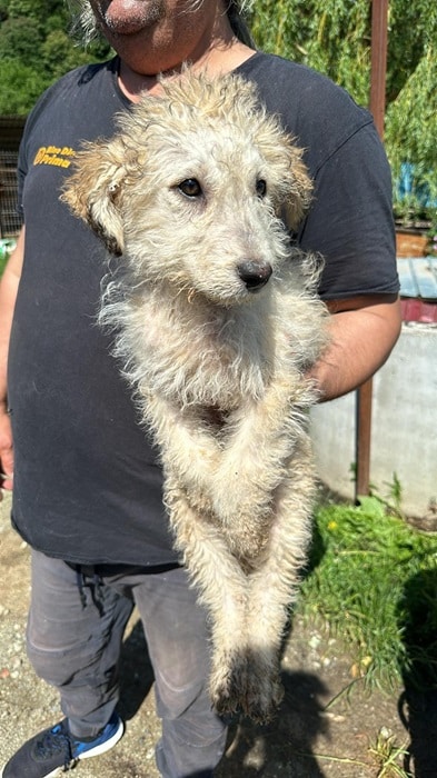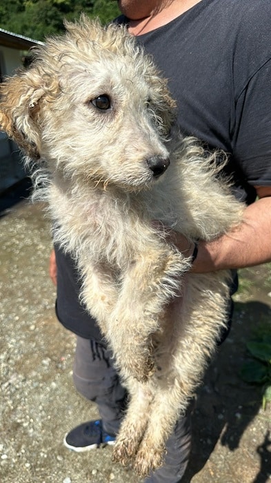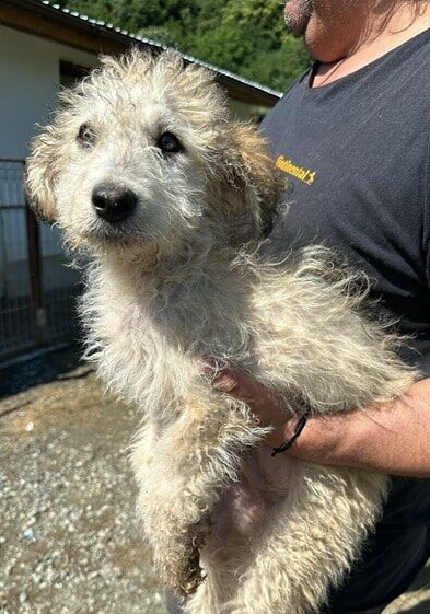 Der kleine zarte Rüde wurde mit seinem Brüderchen auf der Strasse, umherirrend gefunden. Nun ist er in Sicherheit allerdings braucht er jetzt auch bald seine Menschen, damit er so bald wie möglcih positiven Lerninput erhält und nicht im Shelter groß werden muss.