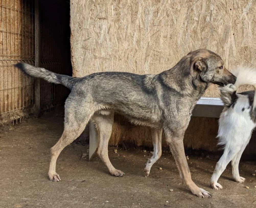 WIGO freut sich über Besuch in seinem Kennel, er kommt neugierig an die Hand, bleibt aber auch immer etwas auf Distanz. WIGO ist sehr verträglich und sollte Zweithund werden.
