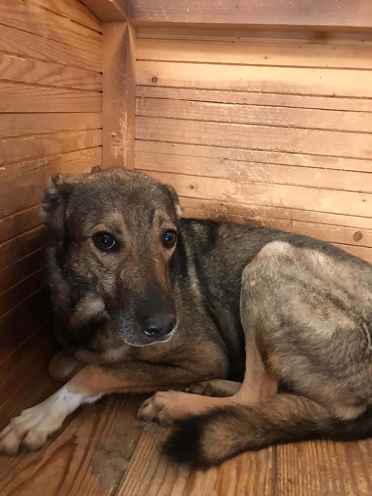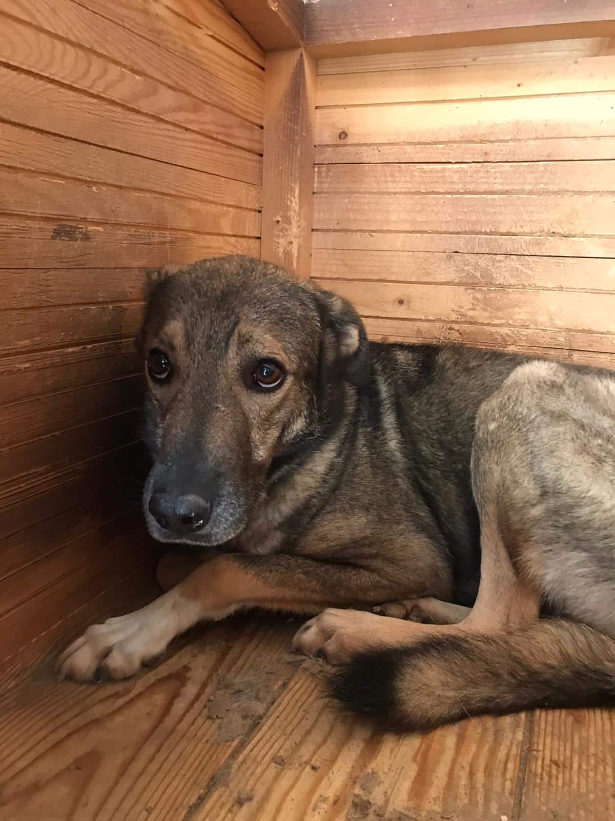Update 11/22: Wigo liegt nur noch ängstlich in seiner Hütte. Er hat sich total zurückgezogen und aufgegeben. Es ist ein Trauerspiel. Wigo geht immer mehrere Schritte in der Entwicklung pos. nach vorne um dann wieder zurückzufallen. Wen wundert es, bei der Vielzahl an Hunden und der Lautstärke und dem mangelnden Input eines Menschen in seinem Leben. Er bräuchte eigentlich dringend erfahrene Menschen am besten mit souveränen und entspannten Ersthund an seiner Seite, der ihm zeigt wie toll das Hundeleben sein kann.