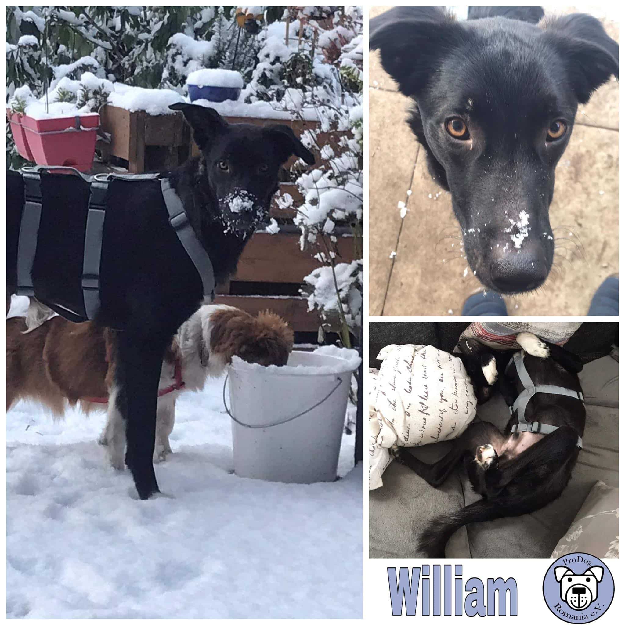 William ist noch etwas schüchtern, aber er baut zu seinem Menschen eine sehr gute Bindung auf. Geht schon ganz toll an der Leine , im Auto fährt er ruhig mit.