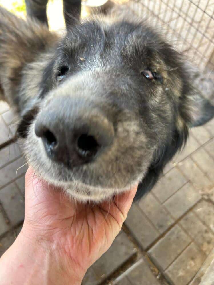 Der große WINDOW begrüßte uns freundlich an der Kenneltür. Wir mussten ihn etwas zur Seite schieben, um überhaupt eintreten zu können. Vermutlich wäre er lieber rausgekommen. Er ist noch recht neu im Shelter und hat diesen Kennel erst wenige Tage vor unserem Besuch bezogen. WINDOW ließ sich anstandslos überall von uns anfassen und nach kurzer Zeit zeigte er auch, dass er gestreichelt werden wollte. Die Abwechslung, die unser Besuch bot, schien ihm zu gefallen.