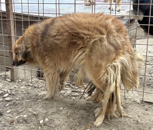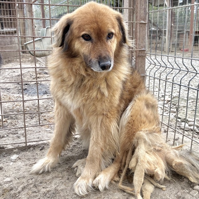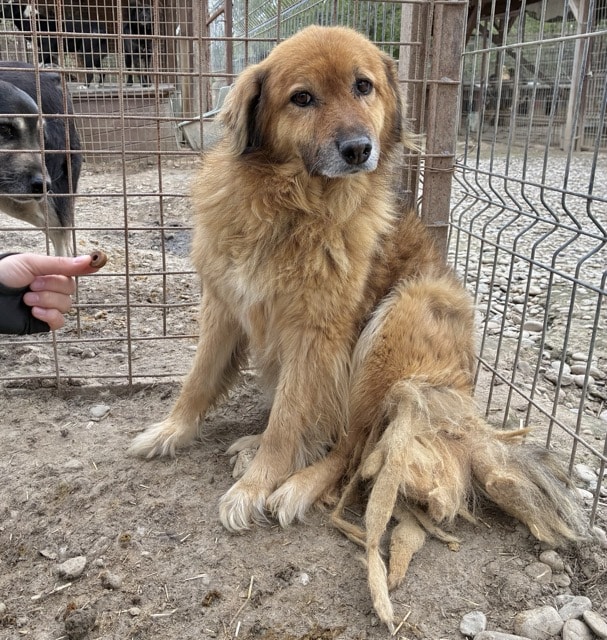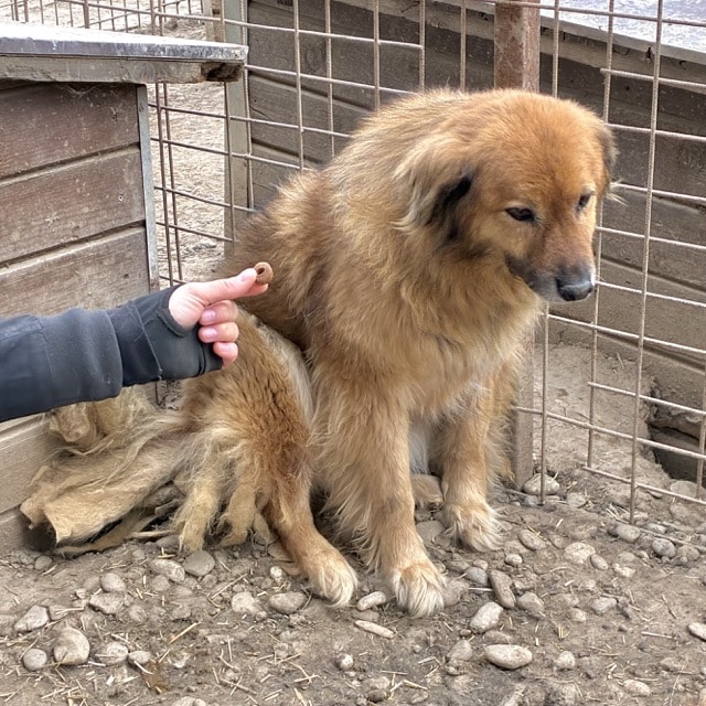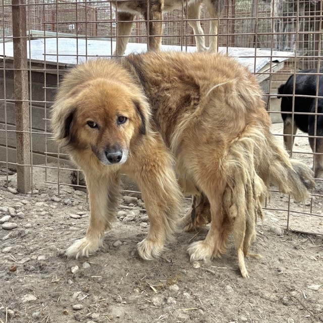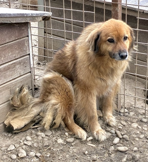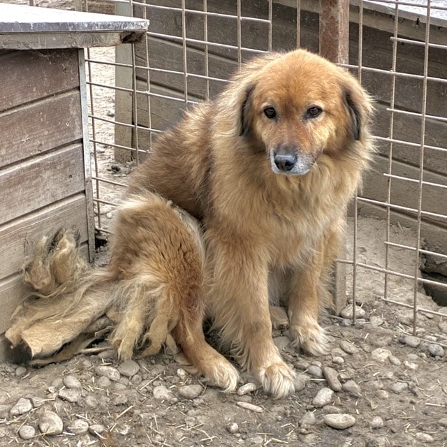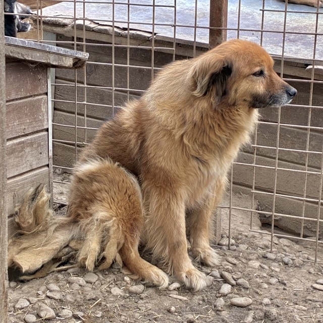 WINNI lebt nun bereits seit 4 unvorstellbar langen Jahren im riesigen Shelter Bucov und hatte in der Zeit leider kaum Besuch… 4 Jahre verbringt dieser traurige Hund bereits im selben Kennel, sieht Tag für Tag die selben Gitterstäbe und hat etliche Hunde kommen und gehen sehen. Doch für so sensible Seelen wie WINNI stehen die Chancen leider schlecht, unter den Tausenden gesehen zu werden und die große Chance auf Ausreise zu erhalten. Die Rute und Hinterbeine von WINNI sind schon lange stark verfilzt. Es war uns bei diesem Besuch möglich, einige Filzklumpen zu entfernen, da WINNI sich während unserer Anwesenheit fast ausschließlich in der Hütte aufhielt und den Kopf wegdrehte… Vermutlich wäre WINNI am liebsten unsichtbar geworden, blieb jedoch zu jeder Zeit defensiv. Wir suchen für diesen sensiblen, unsicheren Schatz einen liebevollen Platz bei erfahrenen Menschen, die WINNI behutsam an die Pfote nehmen und Stück für Stück Vertrauen aufbauen. Wir wünschen uns so sehr, dass WINNI nach so vielen verlorenen Jahren der Isolation noch einmal die Chance erhält, auftauen und die Sonnenseiten des Lebens kennenlernen zu können. Ein souveräner Ersthund wäre hier ein Muss.