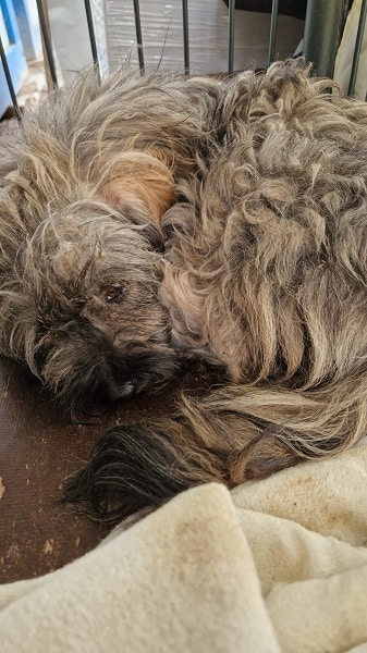 WINNY wurde in Bucov abgegeben. Sie hatte 3 Welpen, diese gab man aber nicht her. Nur WINNY wollte der Besitzer loswerden und so saß sie nun ganz alleine mit prall gefüllten Zitzen in einem Transportwagen. WINNY trauerte sehr um ihre Babys, die sicher noch zu jung waren, um sie von ihr zu trennen. Sie ließ sich streicheln, war aber verständlicherweise völlig durch den Wind. Aniela hat sie ins Sanctuary of Hope mitgenommen. Auch dort sitzt sie derzeit noch in einem Käfig.