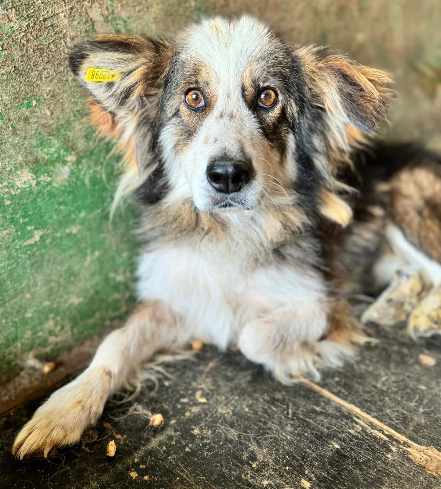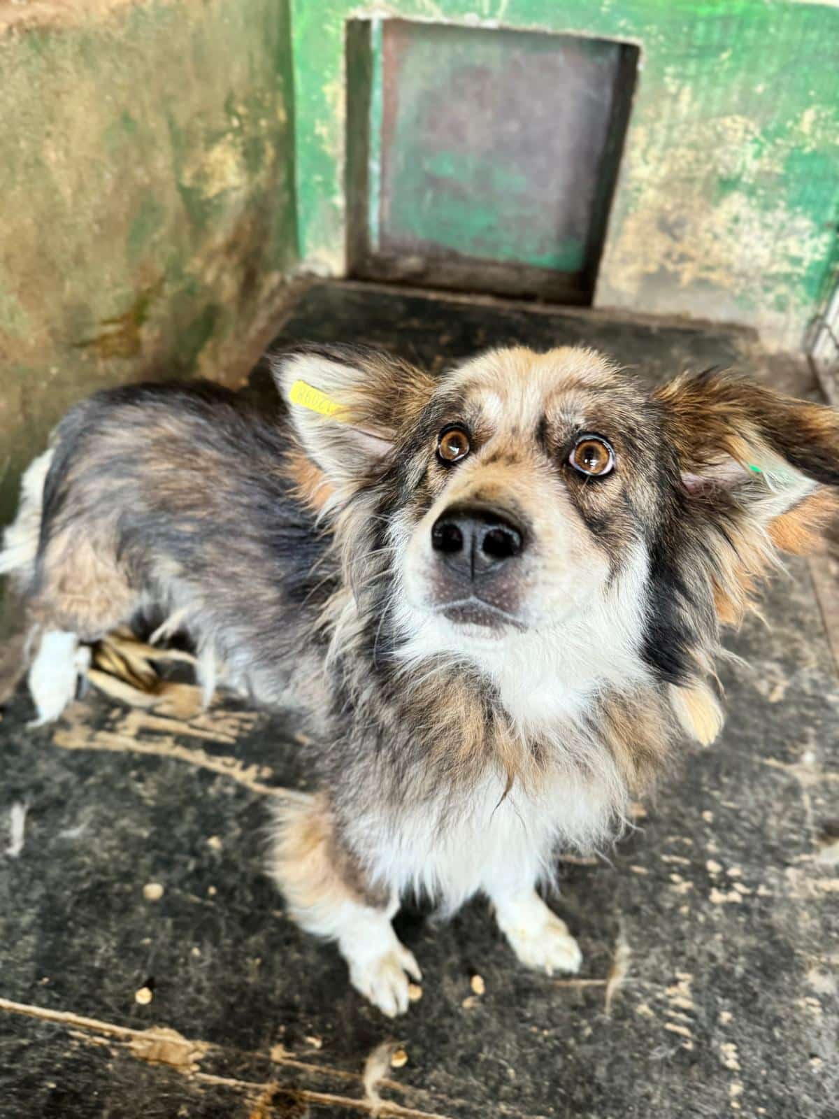Dieser kleine Kerl entzückte uns sehr mit seinen großen Spitzohren. Leider ist WLADI’s Fell aber sehr verfilzt und er ist zu dünn. In einer Gruppe mit mehreren größeren Hunden saß er im Vetkennel. Diese wurden während unseres Besuches in einen Außenkennel umgesetzt, sodass er zunächst alleine zurück blieb. Diese Zeit konnten wir nutzen, bevor er in eine neue Gruppe im Nachbarkennel umgesetzt wurde und schon bald in einen Außenkennel ziehen wird. In beiden Gruppen zeigte er sich verträglich. WLADI war auch uns gegenüber freundlich und aufgeschlossen, ließ sich überall streicheln und legte sich nach kurzer Zeit entspannt neben uns.