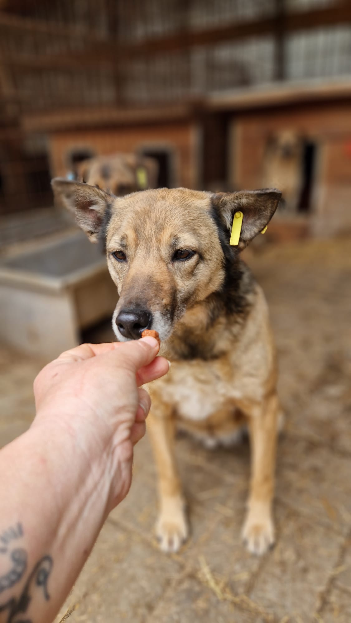 WOLF ist weiterhin neugierig und freundlich und nimmt gerne Leckerlies aus der Hand. Er hat ein eher ruhiges Temperament. Um sich streicheln zu lassen, fehlt ihm noch der Mut.
