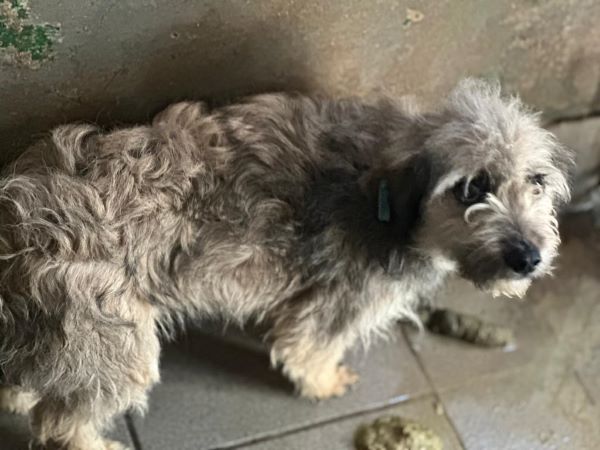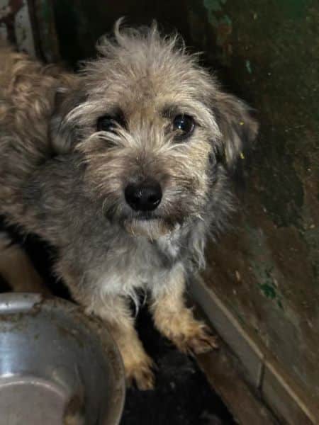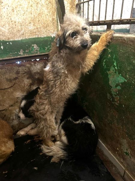 Im hintersten Innen-VetKennel sitzt diese Hündin. In diesen Bereich kommt kein Tageslicht. Immer im Dämmerlicht zu sitzen, ist heftig, aber aktuell der sicherste Ort für sie im Shelter. Also kein Wunder, das sie Angst hatte und nicht wusste, was nun passiert als wir zu ihr gingen. Ihr versuchte uns durch zaghaftes Abschnappverhalten auf Distanz zu halten. Da dies ziemlich harmlos war, würden Menschen mit ausreichend Erfahrung sie schnell zutraulicher bekommen. An diesem schrecklichen Ort nicht möglich. Sie ist verträglich. Bitte lasst sie nicht im Dunkeln sitzen.
