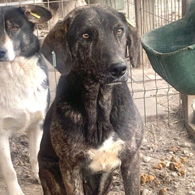 Der gestromte Rüde wurde sichtlich von unserer Anwesenheit beeindruckt, da er selten von Menschen besucht wird – mit Ausnahme der Arbeiter. Neugierig liegt er entspannt in unserer Nähe, zeigt jedoch bei Berührungen deutliches Fluchtverhalten. Sein Charakter ist freundlich, aber gleichzeitig auch etwas unsicher. Er benötigt unbedingt positiven menschlichen Input.