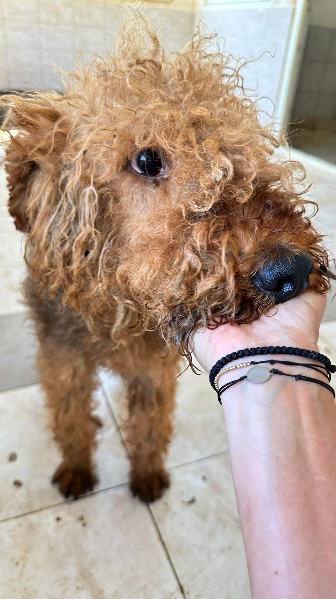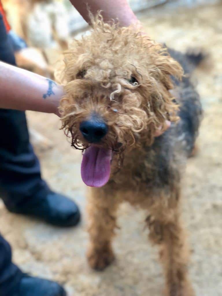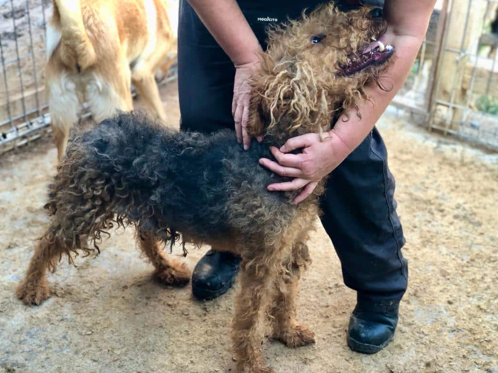 Der liebe Rüde zeigt sich super lieb und aufgeschlossen. Sein Fell ist verfilzt und verschmutzt.