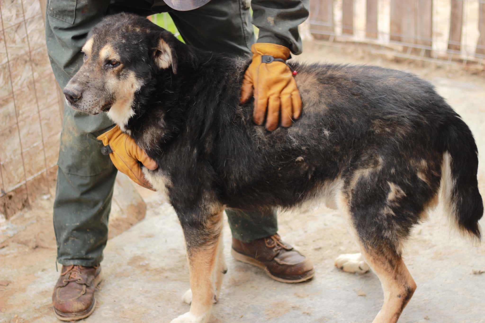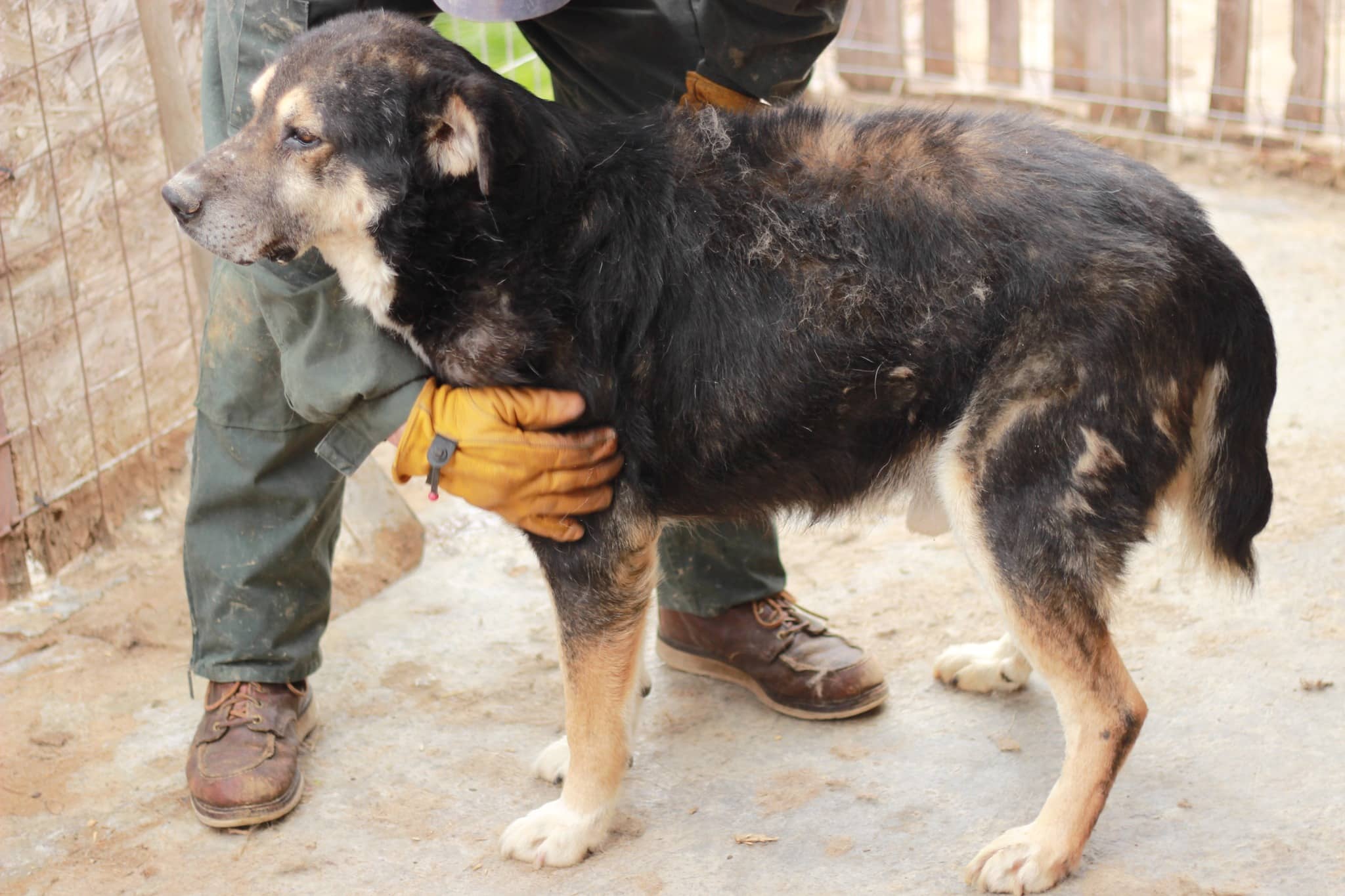 Wyoming ist ein echtes Bärchen, was den Kontakt zum Menschen sucht. Auch er hat sicherlich schon einiges im Leben erlebt, aber das Vertrauen in den Menschen nie verloren. WYOMING ist grundsätzlich verträglich, lässt sich aber von Jungspunden nicht in Frage stellen. Er hat aber durchaus eine sehr lockerer und souveräne Art. Eine ländliche Umgebung, eine nette Hündin, das wäre sicherlich ein gutes Leben für den großen Kerl. Er ist vom Gangbild ein wenig unrund, hat aber auch wenig Muskulatur durch den Mangel an Bewegung.