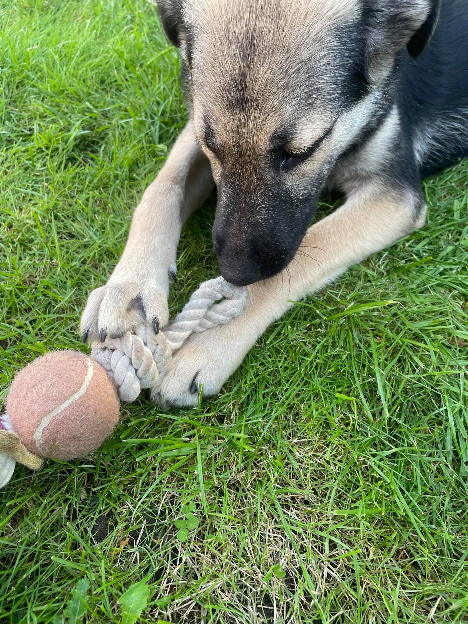 Er macht sein Geschäft schon größtenteils draußen, ab und an passiert aber natürlich noch ein Malheur im Haus, aber was will man erwarten, er ist ja gerade erst da und kennt das Leben im Haus nicht.
