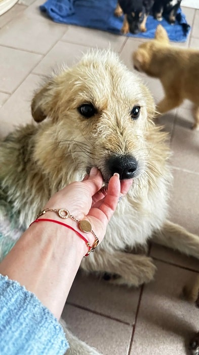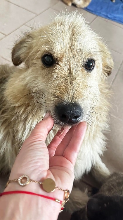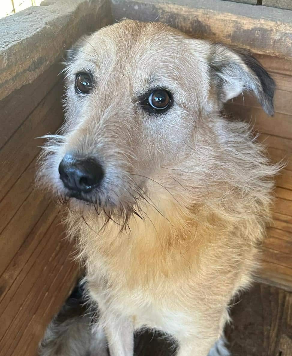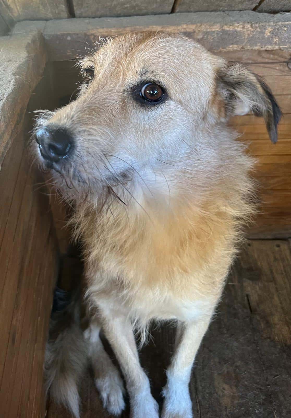Update 09/24: Diesen süßen struppigen Rüden haben wir in der Hütte angetroffen. Er war noch total durch den Wind von der Lautstärke des Shelters und durch unseren Besuch verunsichert. Wir konnten ihn streicheln, aber man sieht deutlich, dass er das noch nicht kennt. Allerdings freut er sich schon wenn wir kommen und ist zutraulich. Er ist mit Junghunden zusammen, die ihn sehr mögen und wo er super zurechtkommt. Er ist ganz offensichtlich auch ein Halt für die Kleinen, liegen die doch auf ihm dran zum Kuscheln. Wir gehen davon aus, sobald er das Shelter hinter sich lassen kann, wird auch er ein entspannter Begleiter. Wir hoffen er muss nicht so lange auf seine Familie warten.