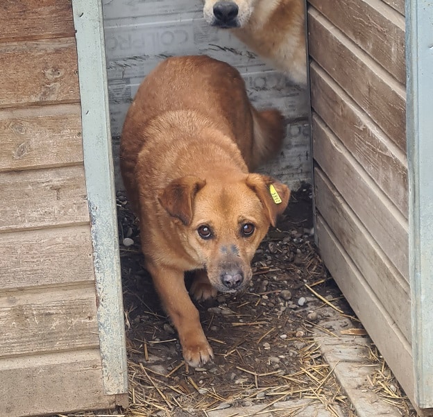 Xenia wich uns aus und versteckte sich schließlich in der Hütte. Unter Bedrängung konnten wir sie dort dann aber gut streicheln. Eine nette kleine Hündin, die nach Eingewöhnungszeit bei geduldigen Menschen und souveränem Ersthund sicherlich zutraulicher werden würde.