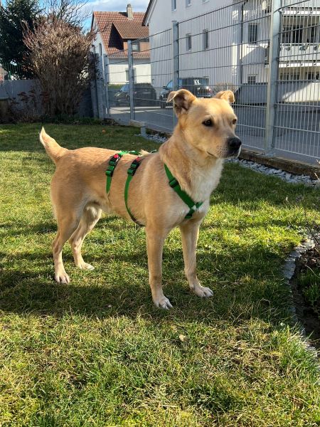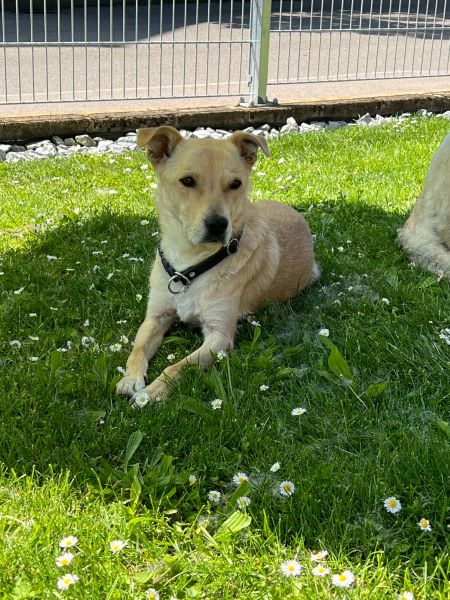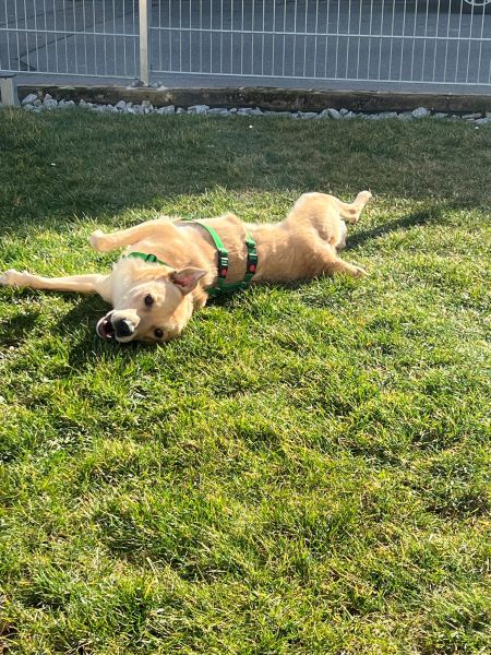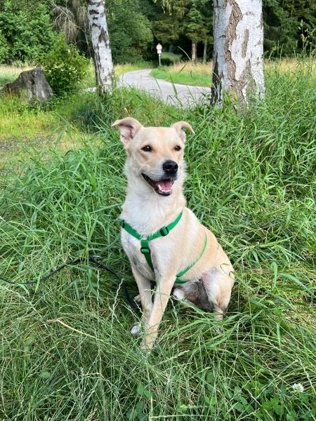 Autofahren macht mir in der Zwischenzeit nichts mehr aus. Ich gehe brav an der Leine. Bei Hundebegegnungen bin ich interessiert, verhalte mich aber überwiegend ruhig. Werde ich angestarrt muss ich das schon auch kommentieren.