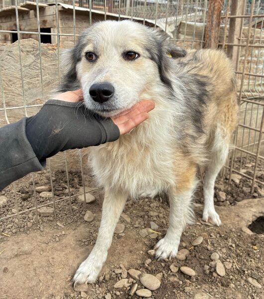 Diese wunderschöne Hündin mit den ausdrucksstarken Augen brauchte einen Moment, um sich an unsere Anwesenheit zu gewöhnen. Zunächst beobachtete YALAH uns aus sicherer Entfernung und nahm nach kurzer Zeit die mitgebrachten Leckerlie aus der Hand. In einer Kennelecke konnten wir YALAH schließlich behutsam streicheln. Es schien, als sei ihr diese intensive Nähe noch fremd und daher ungewohnt, doch sie ließ es tapfer geschehen. Wir merkten deutlich, wie die Anspannung von ihr abfiel und nach diesem intensiven Kontakt konnte YALAH sich im Kennel direkt viel entspannter um uns herum bewegen. Sie zeigt uns deutlich, dass sie bereit ist, anzukommen und Vertrauen zu lernen. Wir wünschen der verträglichen Maus, dass sie schon bald diese Chance erhält.