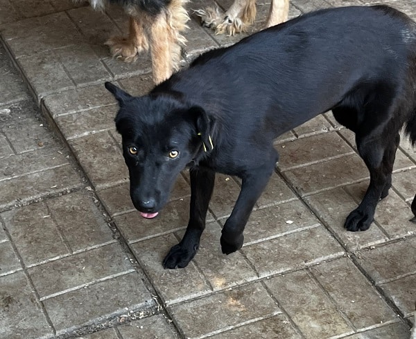 YAMI beobachtete uns neugierig, was wir in ihrem Kennel so machen. In dem Moment wo YAMI merkt, dass wir unsere Aufmerksamkeit auf sie richten, wird sie unsicher und weicht uns aus. Sie ist dabei aber nicht panisch, man merkt ihr vielmehr an, dass sie Menschenkontakt nicht kennt. Wir suchen für YAMI erfahrene Menschen, die mit ihr zusammen den Weg des Vertrauensaufbau gehen. Ein souveräner Ersthund sollte vorhanden sein und würde YAMI in der Eingewöhnungszeit sicher helfen.