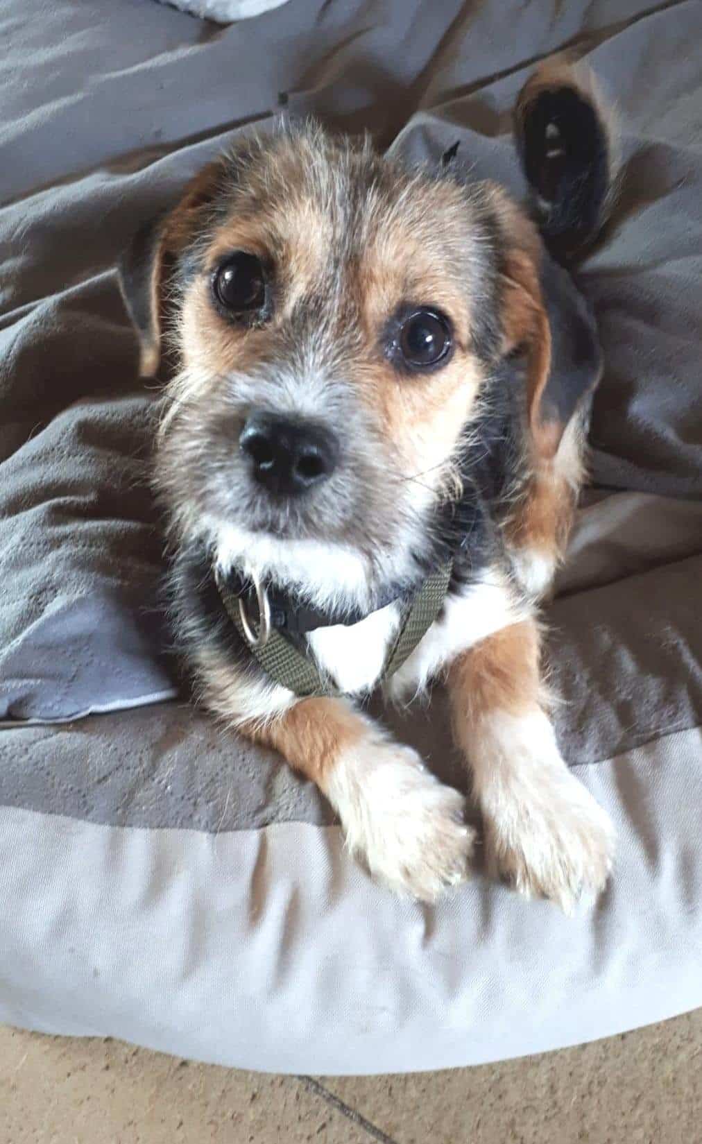 Wie optisch erkennbar hat er wohl „Terriergene“ im Blut. Im Haus ist der Kleine unproblematisch und Alltagsgeräusche machen ihm nichts aus.