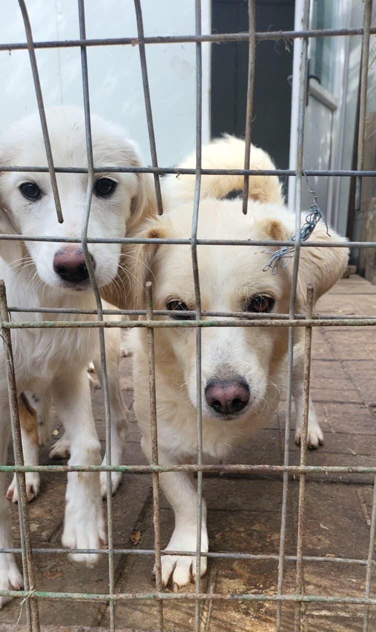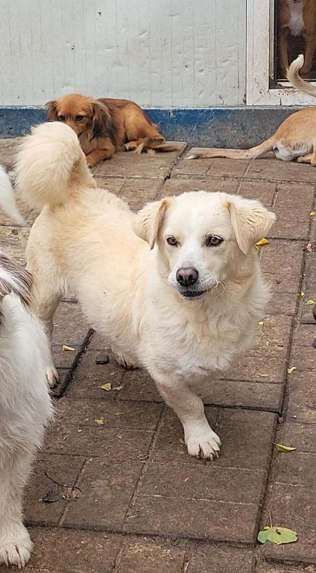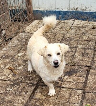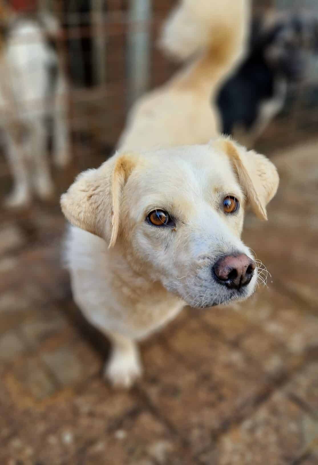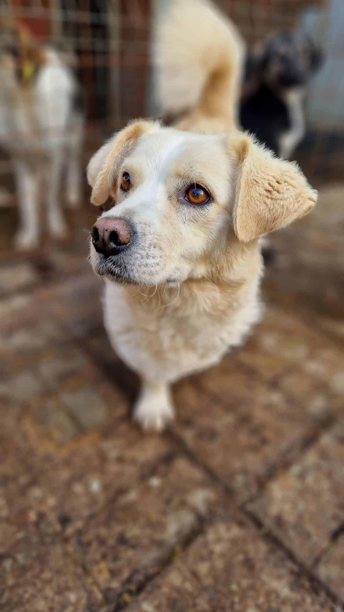 YANNIK sitzt in einem vollen Kennel mit Welpen und Junghunden und zeigt sie sehr nett ihnen gegenüber. Zuerst wich er uns aus, wollte aber auch nicht zwischen zuviel Gewusel geraten, da er mit seinen 3 Beinen nicht schnell laufen kann. Als wir ihn streichelten, spürte man seine Erleichterung und er suchte dann aktiv unsere Nähe. Ein netter Rüde, der sich da kaum wehren kann.