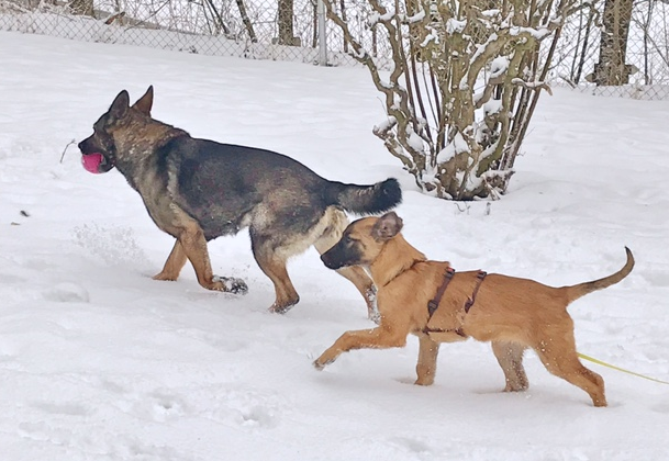 Wir vermuten, dass in ihr ein paar Schäferhund-Gene stecken, da sie sehr gern Dinge durch die Gegend trägt und Zerrspiele spielt. Sie wünscht sich zusätzlich zu Spaziergängen und Toben mit Artgenossen auch Kopfarbeit.