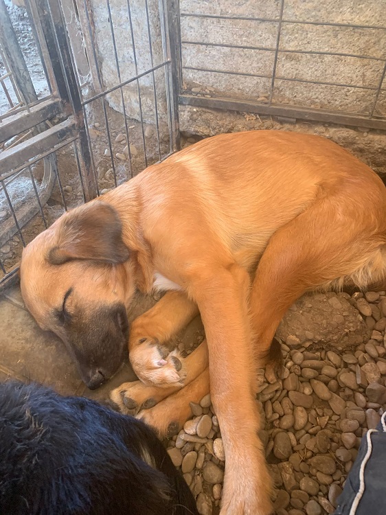 Wir suchen dringend einen Platz für das todmüde Mädchen, dass erstmal geschlafen hat, als die anderen Junghunde in ihrem Kennel mit den Erfasserinnen beschäftigt waren