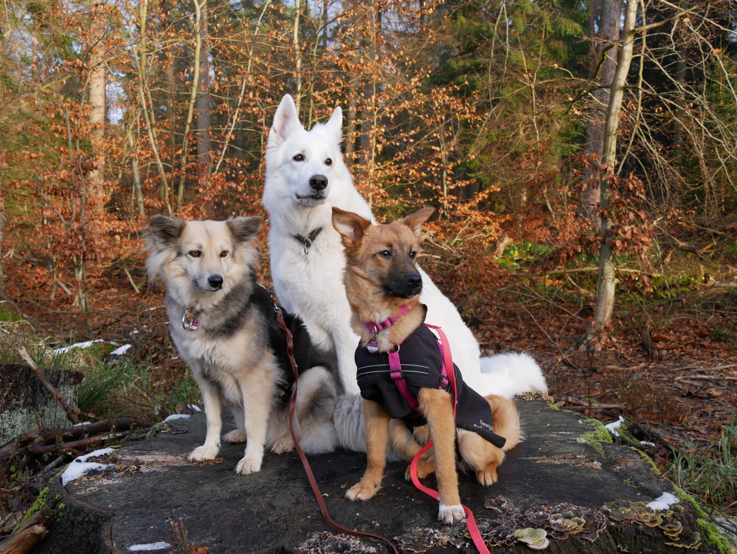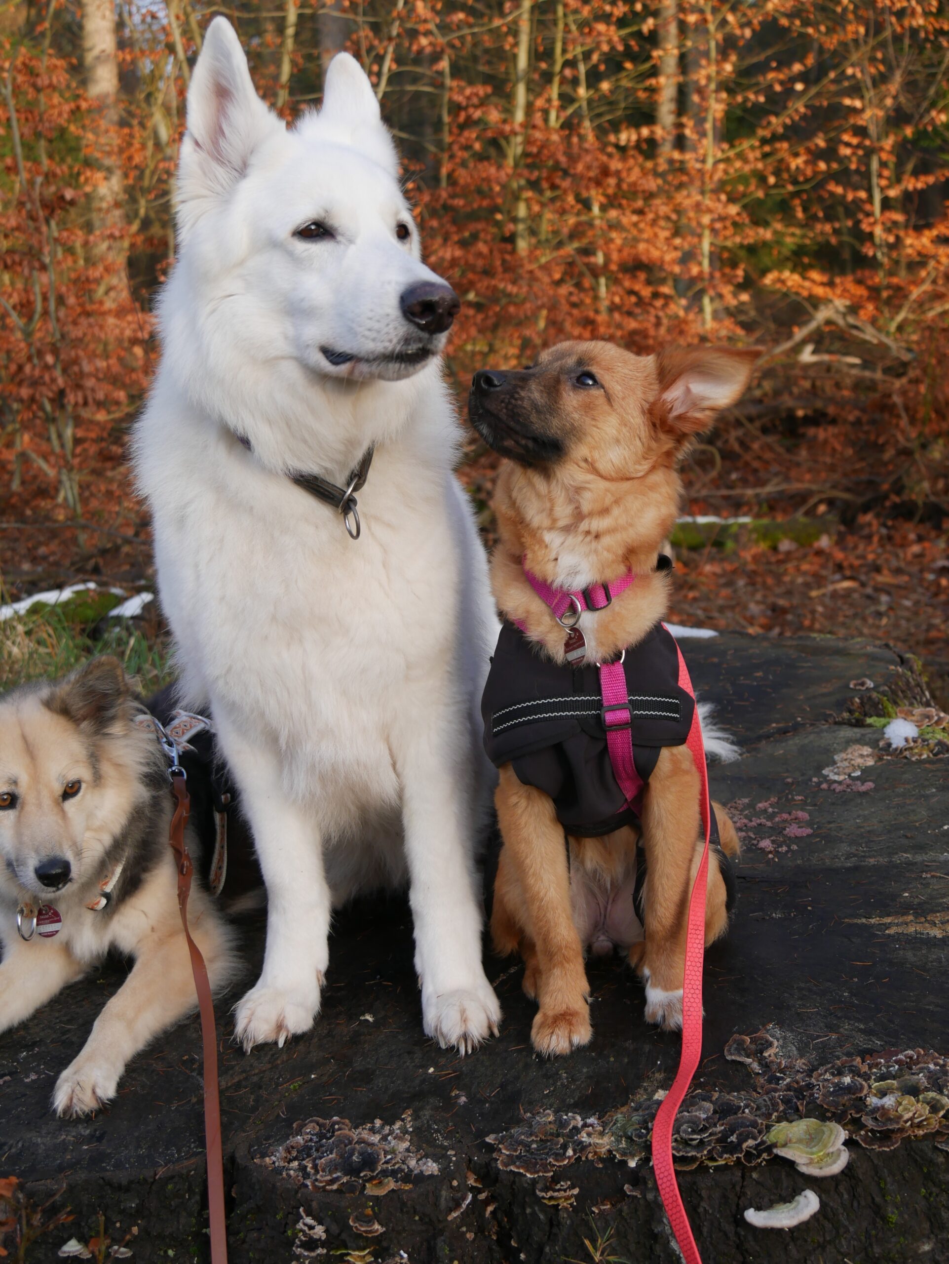 Großstadt haben wir noch nicht testen können, eng vorbei fahrende Autos beeindrucken sie noch, wobei ihr da die anderen Hunde Sicherheit geben, sodass sie weitergehen kann.