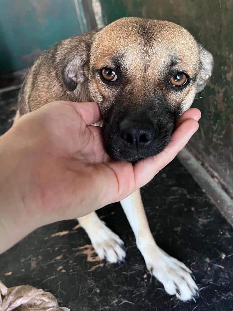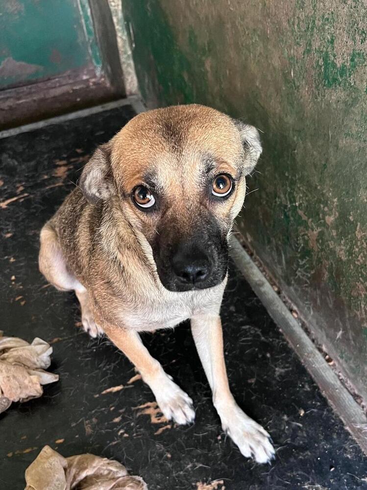 Diese goldige Hündin hatte Probleme mit der Kastrationsnaht und ist deswegen im Vetkennel untergebracht.