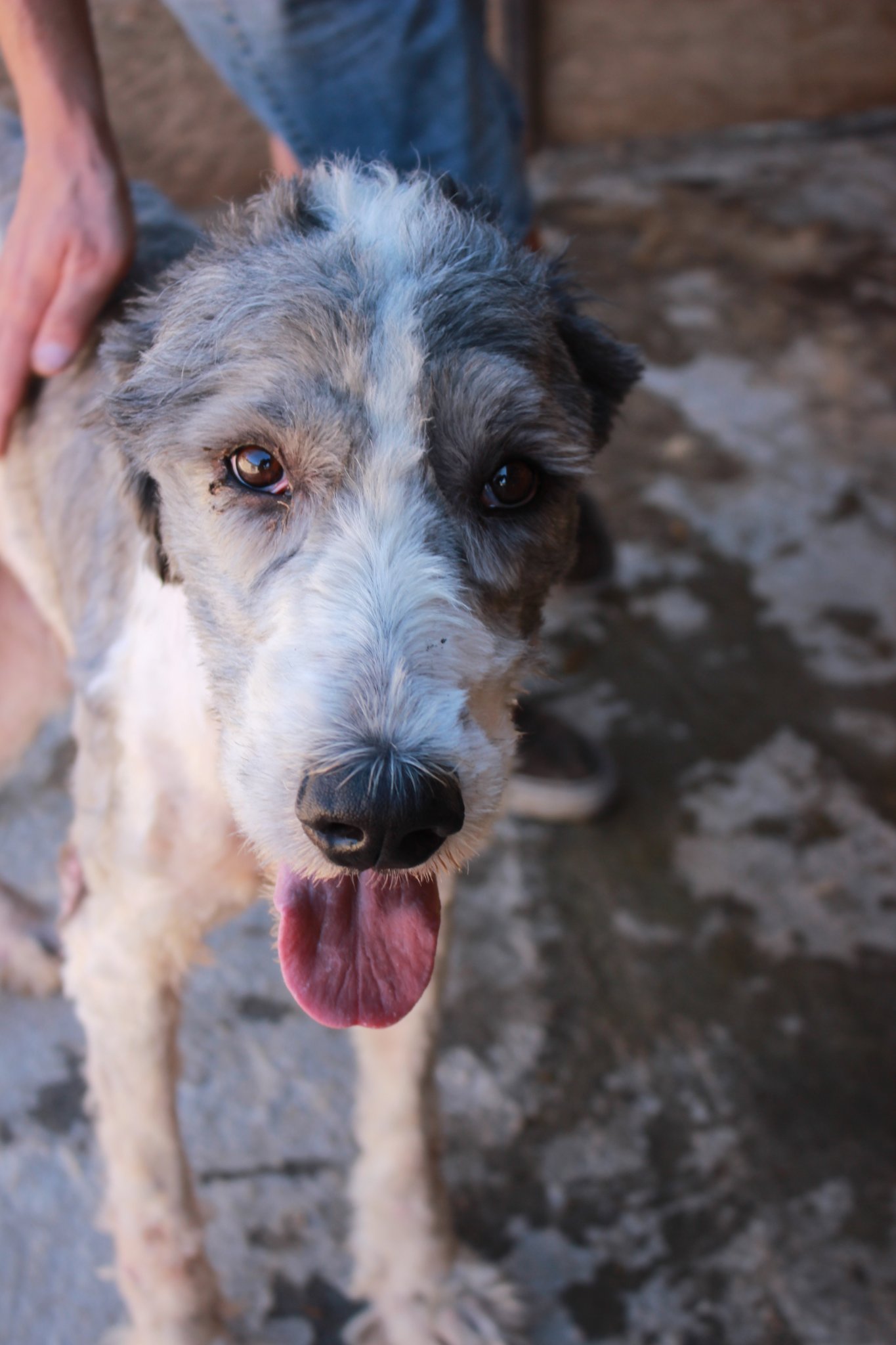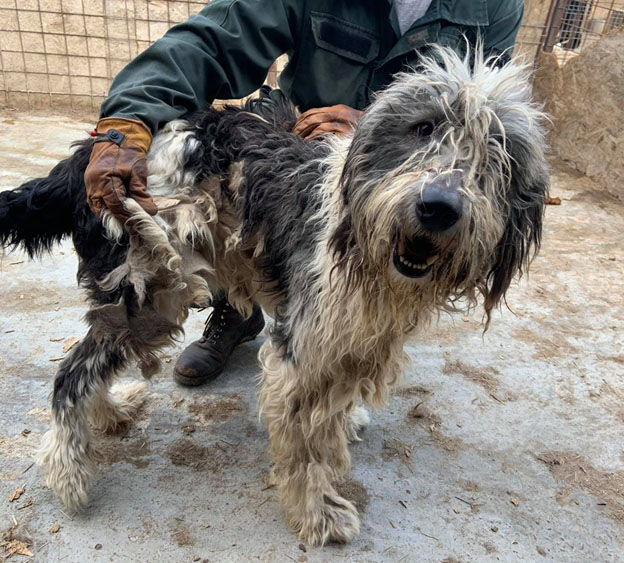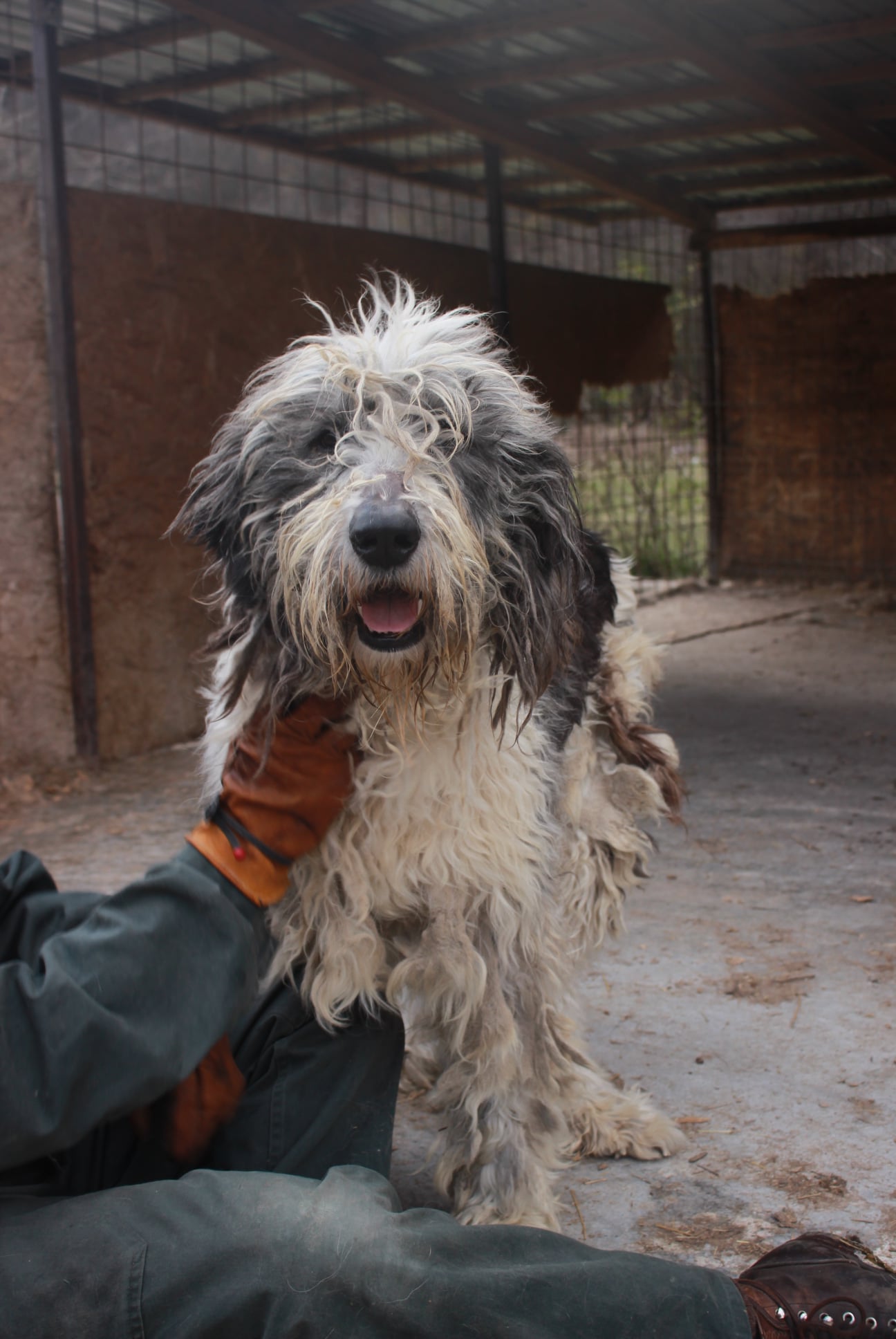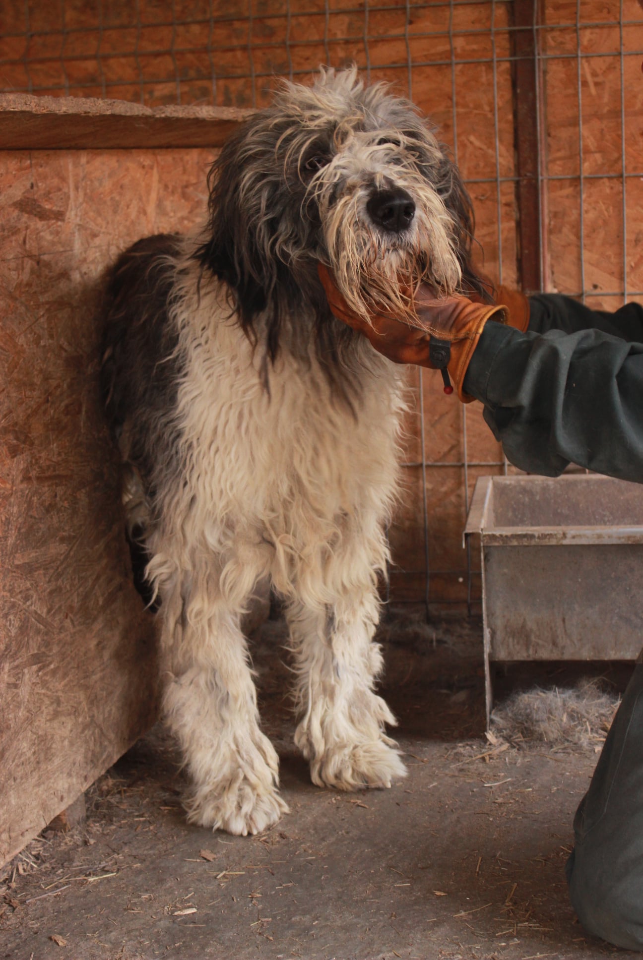 skeptisch, bleibt auf Abstand, beobachtet die Situation verträglich mit Hündinnen, Verhalten zu Rüden aktuell unbekannt muss zu Herdenschutzhund-erfahrenen Menschen braucht Platz und Außengelände