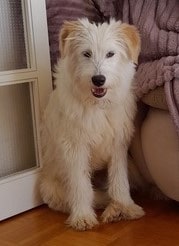Er ist ein sehr lustiger, verspielter und kuschelbedürftiger Junghund. Sehr verträglich mit allen anderen Hunden die er bisher kennengelernt hat, auch Katzen lernt er hier phasenweise kennen, das kann aber bei Bedarf weiter getestet werden. Meine Hühner interessieren ihn überhaupt nicht. Morgens geht er problemlos an der Leine mit in den Pferdestall wo auch immer fremde Menschen und andere Hunde auftauchen. Sein Geschirr lässt er sich außerordentlich gerne anziehen und auch an der Leine läuft er sehr manierlich.