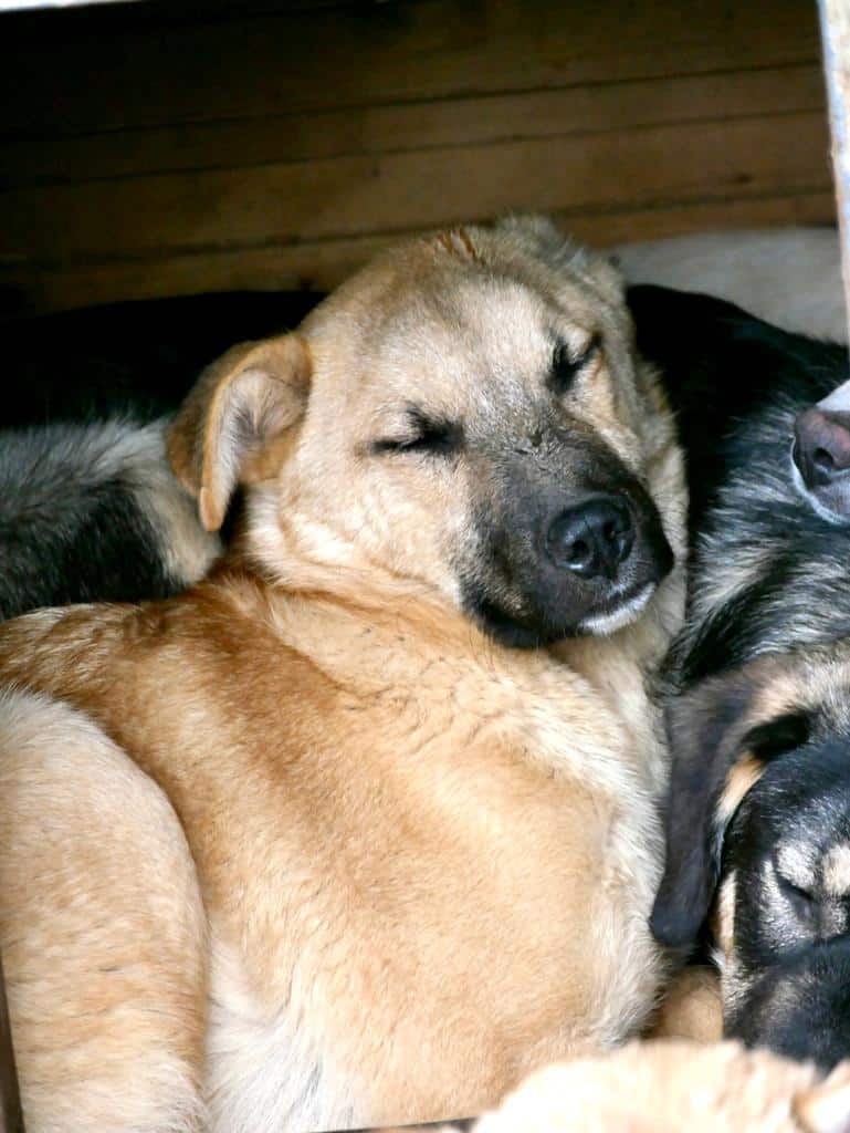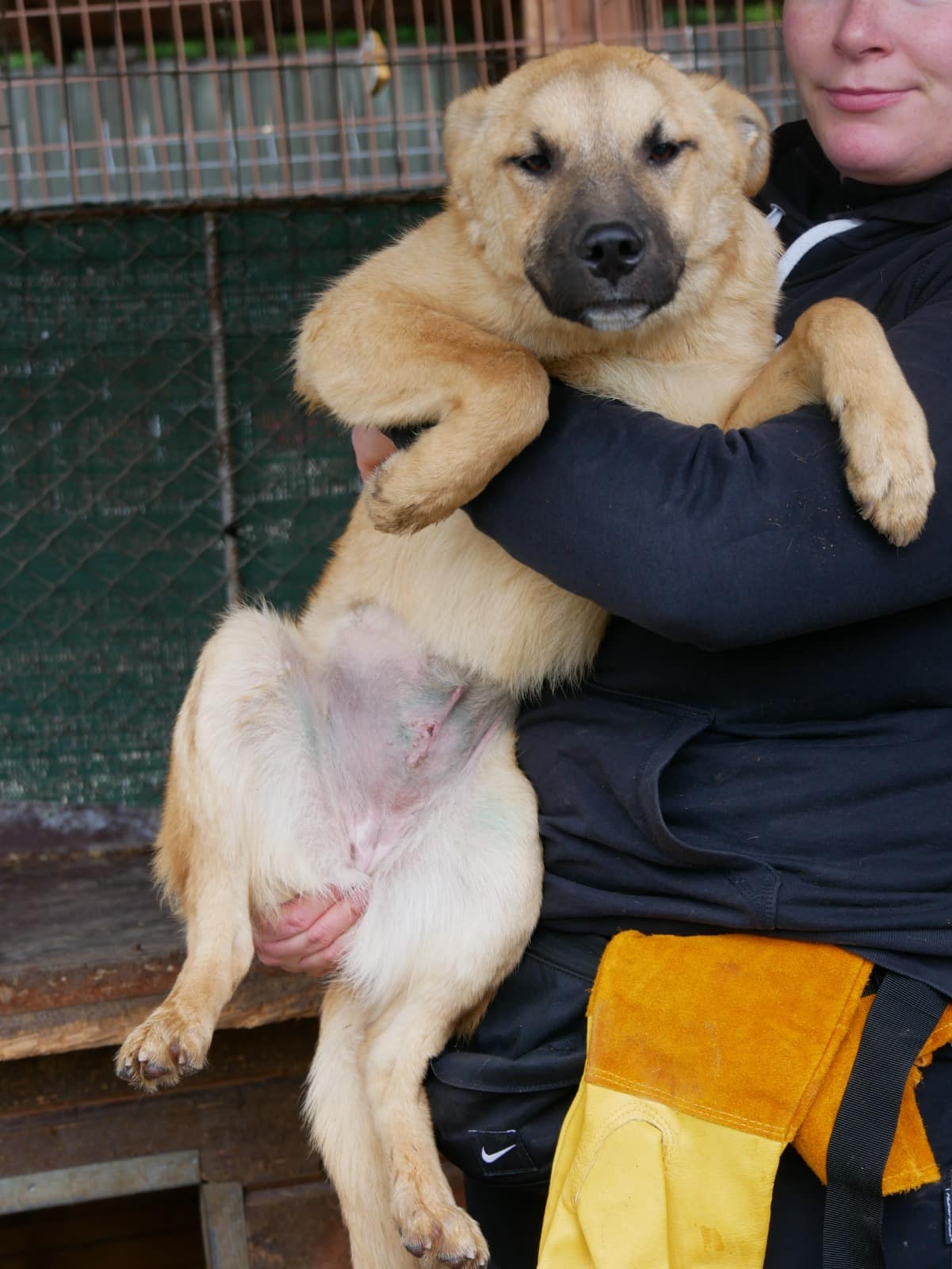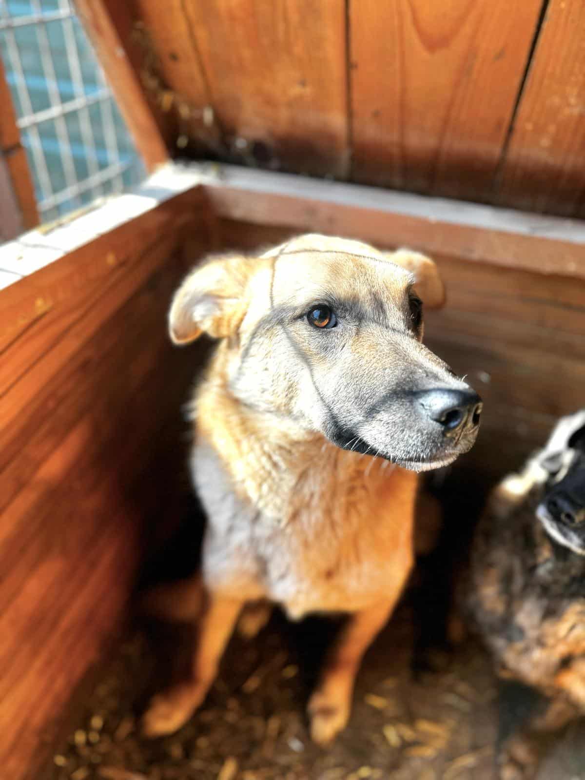 Aus einem schüchternen Welpen wurde eine unsichere Hündin. YNA verkroch sich sofort in die Hütte, als wir den Kennel betraten. Sie beobachtete uns aus sicherer Entfernung. Als wir sie in der Hütte fixierten, ließ sie die Berührungen zu, doch genießen konnte sie es nicht. Sie zeigte sich stets sehr defensiv, man merkte aber stark, dass sie die Berührungen nicht mehr kennt.
