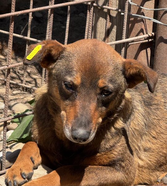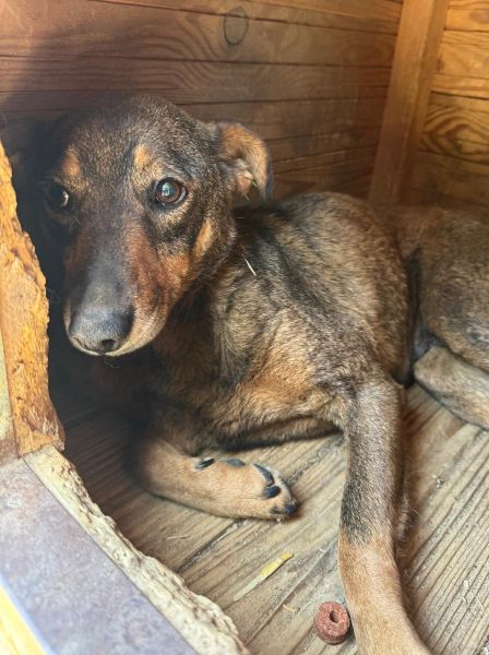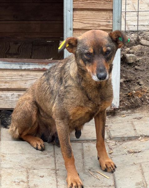 Beim ersten Besuch dieser netten Hündin begegnete sie uns noch zurückhaltend und hielt sich eher im Hintergrund auf. Da durch die Sonne Fotoaufnahmen unmöglich waren, sind wir am nächsten Tag wieder gekommen. Die wunderschöne Hündin hatte uns dann bereits am Kenneltor empfangen. Mit leichter Zurückhaltung begegnete sie uns neugierig und interessiert. Mit ihrem sanften Wesen genoss sie jede Streicheleinheit still und dankbar, immer wieder hob sie zart die Pfote, als wolle sie sagen: „Bitte noch ein bisschen.“ Eine wirklich bezaubernde ruhige Hündin, die uns sehr berührt hat.
