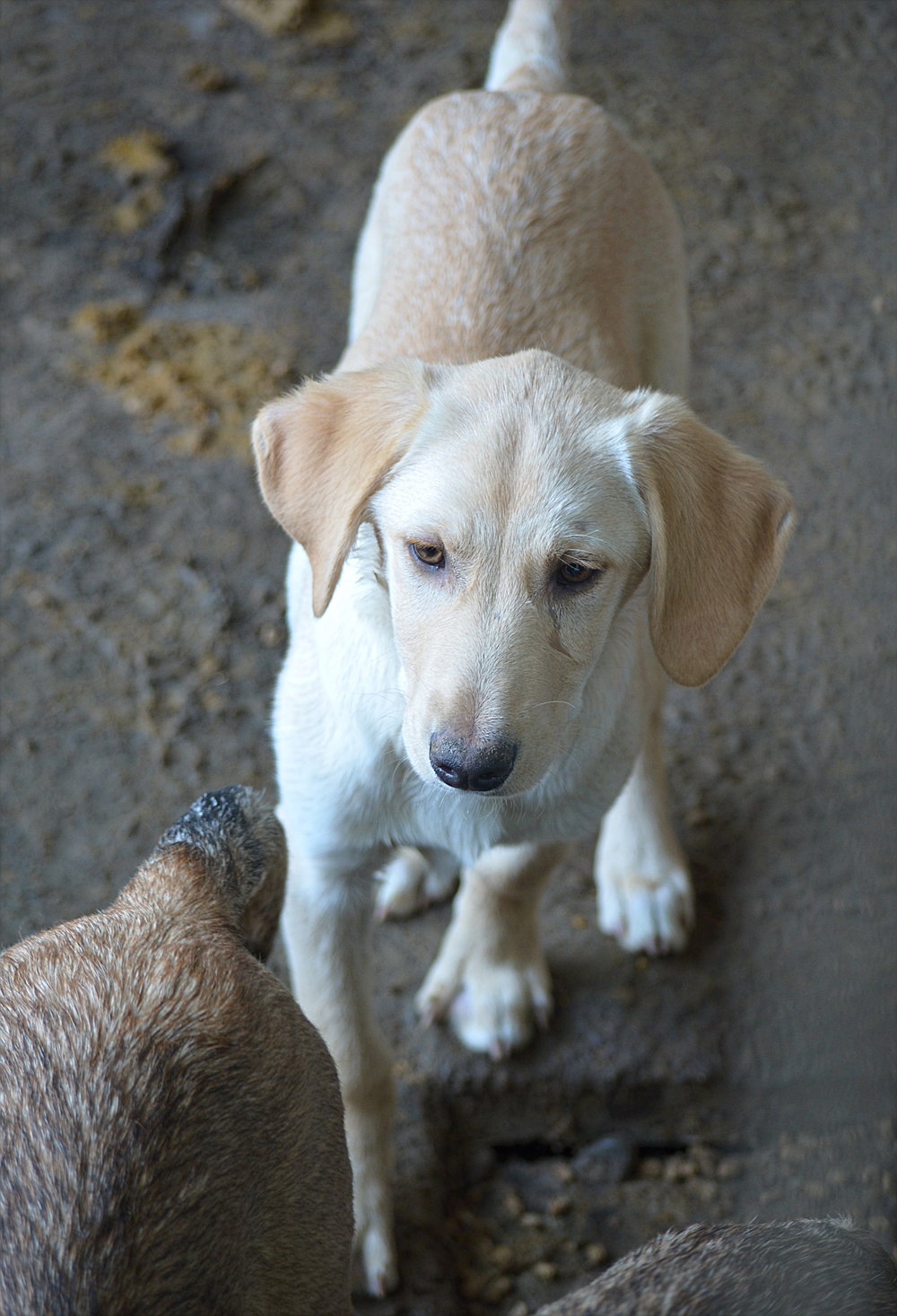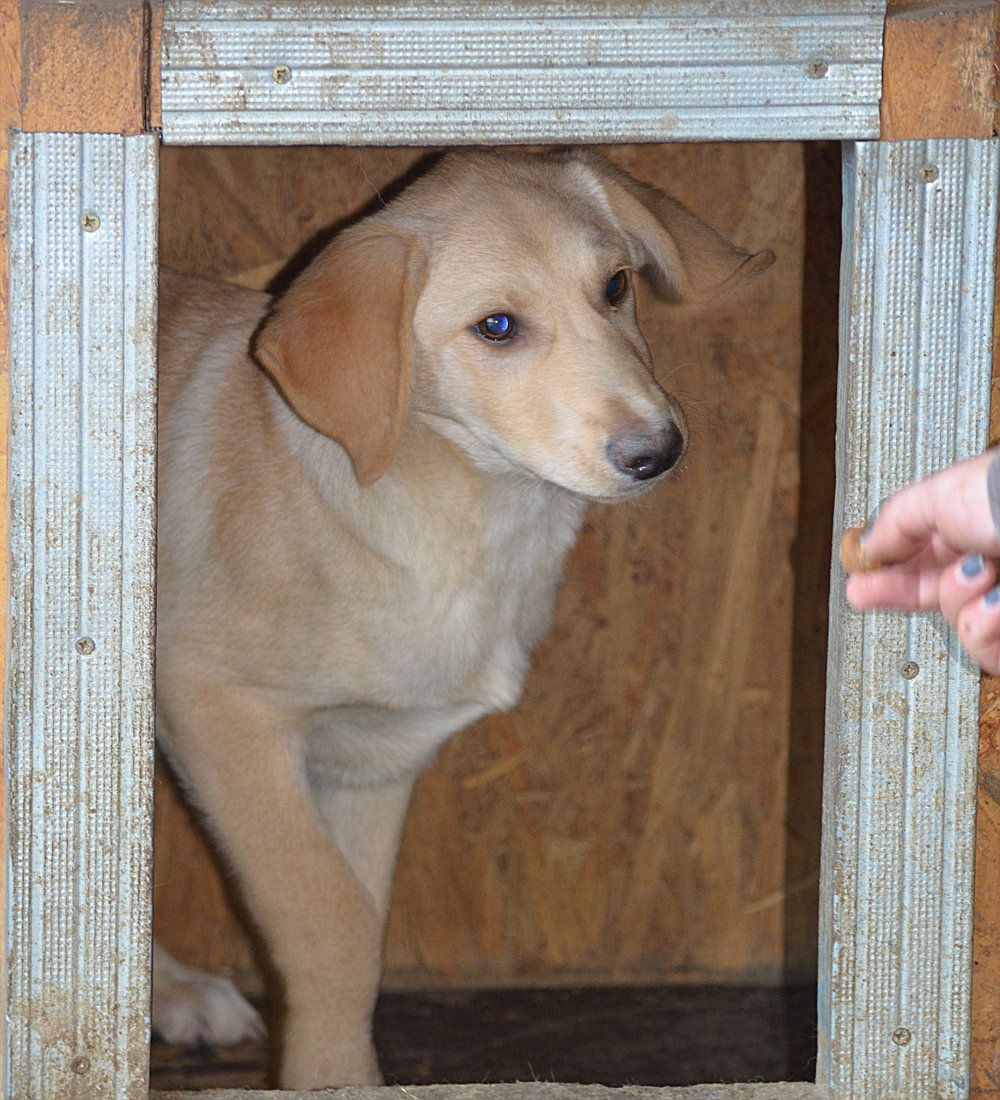 Der nette YOKO verzog sich in die Hütte, als wir den Kennel betraten. Er beobachtete uns neugierig und nahm Leckerli aus der Hand. Als wir ihn dann in der Hütte streicheln konnten, taute er merklich auf und konnte es schon ein kleines bisschen genießen. Trotzdem sollte er schnellstmöglich aus dem Shelter, bevor er noch ängstlicher wird.