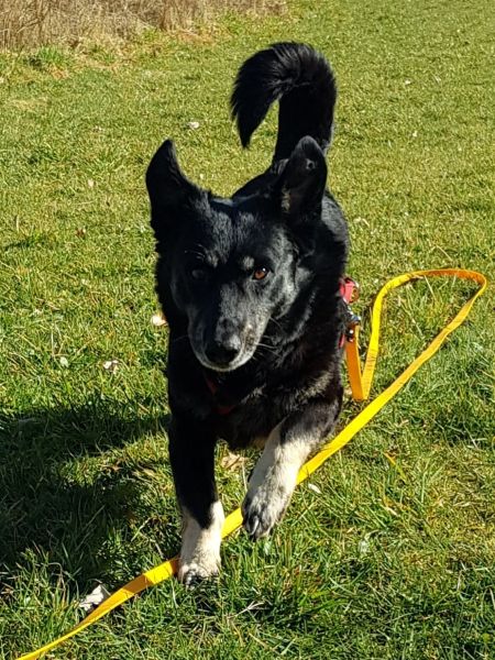 Sie geht gerne spazieren wobei sie ohne zu ziehen, locker an der Leine läuft und Pflegefrauchen dabei immer im Blick hat. An der langen Schleppleine ist sie vorbildlich abrufbar. Yrsa braucht keine stundenlangen Aktionen. Sie gehört eher zu der gemütlichen Fraktion. Ruhige Spaziergänge machen wirklich Spaß mit ihr, da sie zumindest bis heute absolut keinen Jagdtrieb zeigt. Auch Katzen sind vor ihr sicher. Sie werden lediglich zur Kenntnis genommen. Genauso wie andere Hunde. Yrsa neigt nicht zu überschwänglichen Reaktionen und begegnet den Nachbarschafts-Hunden eher neutral. In Hundegesellschaft muß sie nicht zwingend vermittelt werden. Als Einzel-Prinzessin wäre sie genauso glücklich.