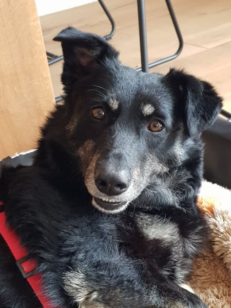 Yrsa hat sich mittlerweile gut eingelebt. Sie lebt hier mit zwei Oldie-Rüden zusammen und das klappt wunderbar. Sie drängelt sich nicht vor, läßt den beiden älteren Herrschaften gerne den Platz in der ersten Reihe und sie ist absolut nicht futterneidisch. Entspannter kann das Leben mit ihr im Haus nicht sein. In der Zeit, in der wir keine Gassirunden drehen, liegt sie zufrieden in ihrem Korb und wartet auf das nächste Abenteuer.