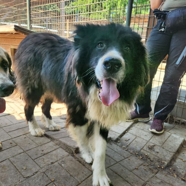 in seinem Kennel lebt ein weiterer großer Rüde, dem er hin und wieder zeigte, dass er seine Anwesenheit nicht braucht. Vielleicht nur wegen uns als Besucher, aber ein Einzelplatz oder ein Platz mit nur einer souveränen Ersthündin wäre geeigneter