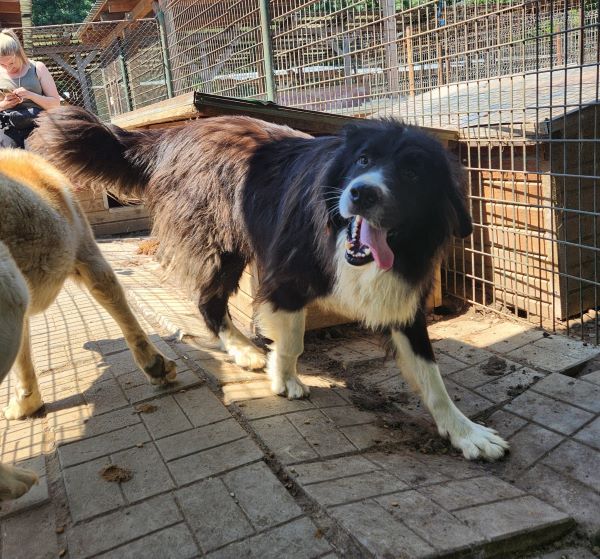 Der hübsche YUKON sitzt weiterhin mit den beiden Rüden zusammen und es gab keinerlei Probleme in unserer Anwesenheit. Er kam zu uns nur wegen der Leckerlie, einen anderen Grund sah er nicht, diese nimmt er ziemlich grob, weshalb er nicht zu kleinen Kindern vermittelt werden sollte. Streicheln lassen wollte er sich bei unserer Anwesenheit nicht, leider hatten wir auch keine Zeit länger in dem viel zu kleinen Kennel zu verweilen um die erste Vertrautheit aufzubauen. Er wünscht sich ein Haus mit Garten, bei Menschen die Erfahrung mit Herdenschutzhunden haben.