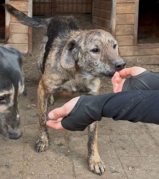 Unsere hübsche YULA hofft nun seit 2 langen Jahren hinter Gitterstäben auf ihr Glück und musste im Shelter erwachsen werden – von einer unbeschwerten Kindheit konnte sie nur träumen. Nicht nur der fehlende Menschenkontakt hat Spuren hinterlassen, auch die Bedingungen im Shelter machen der zarten Hündin sichtlich zu schaffen: YULA ist recht dünn und ihr Fell wirkt stumpf und licht. Sie scheint unter Hautproblemen zu leiden, die wir der Tierärztin vor Ort gemeldet haben. Bei unserem Besuch war sie eine der Neugierigsten, kam immer wieder bis zur Hand, schnupperte freundlich und nahm gern unsere Leckerlie. Sobald wir auf YULA zugingen, wich sie jedoch zurück und suchte Schutz in der Hütte. Unsere zaghaften Berührungen konnte die hübsche Maus noch nicht recht einordnen und fand unsere Hände etwas gruselig, sie blieb aber stets defensiv. Diese intensive Nähe ist für YULA einfach fremd geworden und wir wünschen uns so sehr, dass sie bei lieben und erfahrenen Menschen endlich lernen darf, dass Nähe auch schön sein kann. Ein aufgeschlossener und freundlicher Ersthund würde ihr die Umstellung sicher erleichtern.