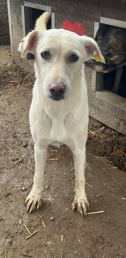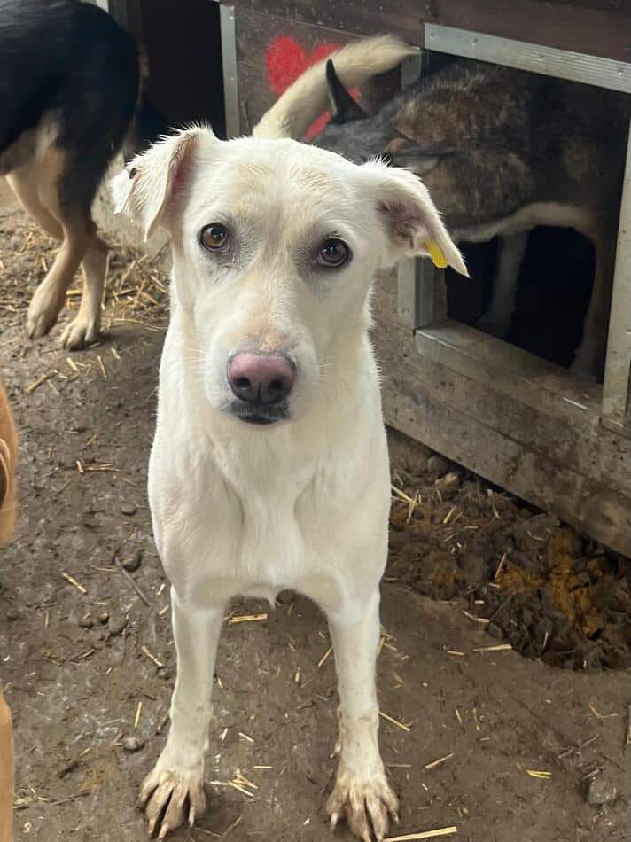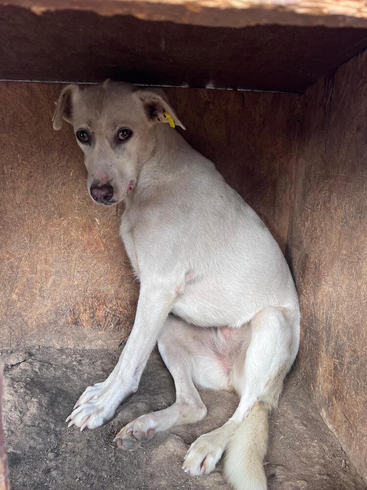 YUNAH haben wir zu dünn im Kennel vorgefunden. Sie begegnete uns freundlich und begrüßte uns bereits am Zaun. Sie war neugierig und interessiert. Wir konnten sie vorsichtig an der Schnauze berühren. Wir haben sie nicht weiter bedrängt.