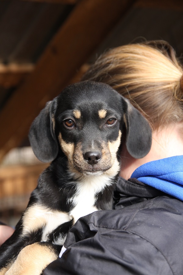 • Aniela hat ihn aus einem Hinterhof gerettet, wo er mit seinen 5 Geschwistern und der Mutter in Matsch und Dreck gelebt hat. Die Mutter wurde kastriert, die Welpen sind nun in Bucov