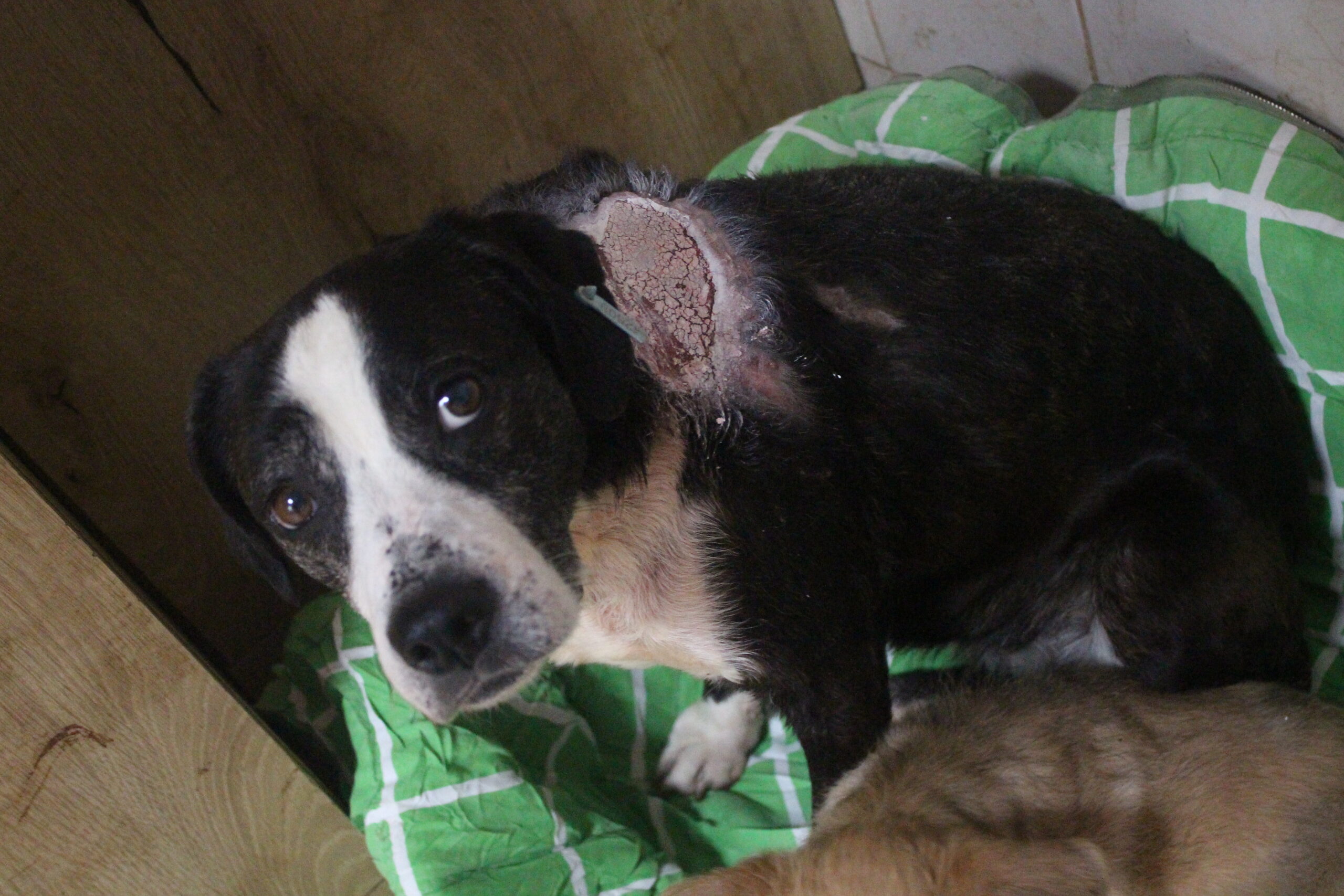 Bei einem unglücklichen Sprung hat sich ZAZA das linke Vorderbein gebrochen. Sie wurde operiert und saß 10 Tage lang in einer Klinik. Nun ist sie zurück im Shelter, kann das Bein aber noch nicht nutzen. Es ist bisher unklar, ob es wieder (voll) belastbar wird.