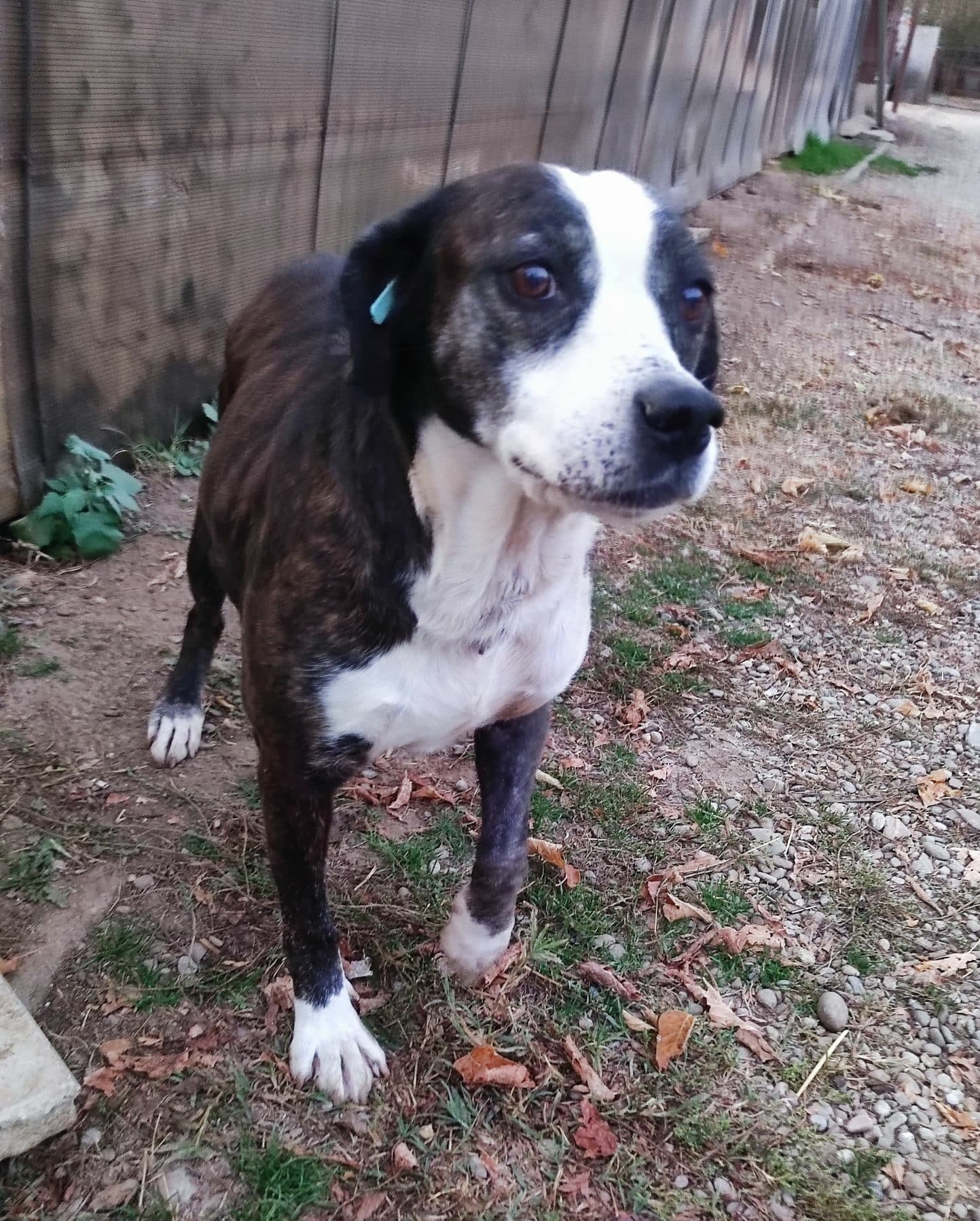 zur Besonderheit: | linkes Vorderbein nach Bruch noch nicht belastbar (10/2022), verheilte Bisswunde im Nacken, seit 2020 im Shelter |