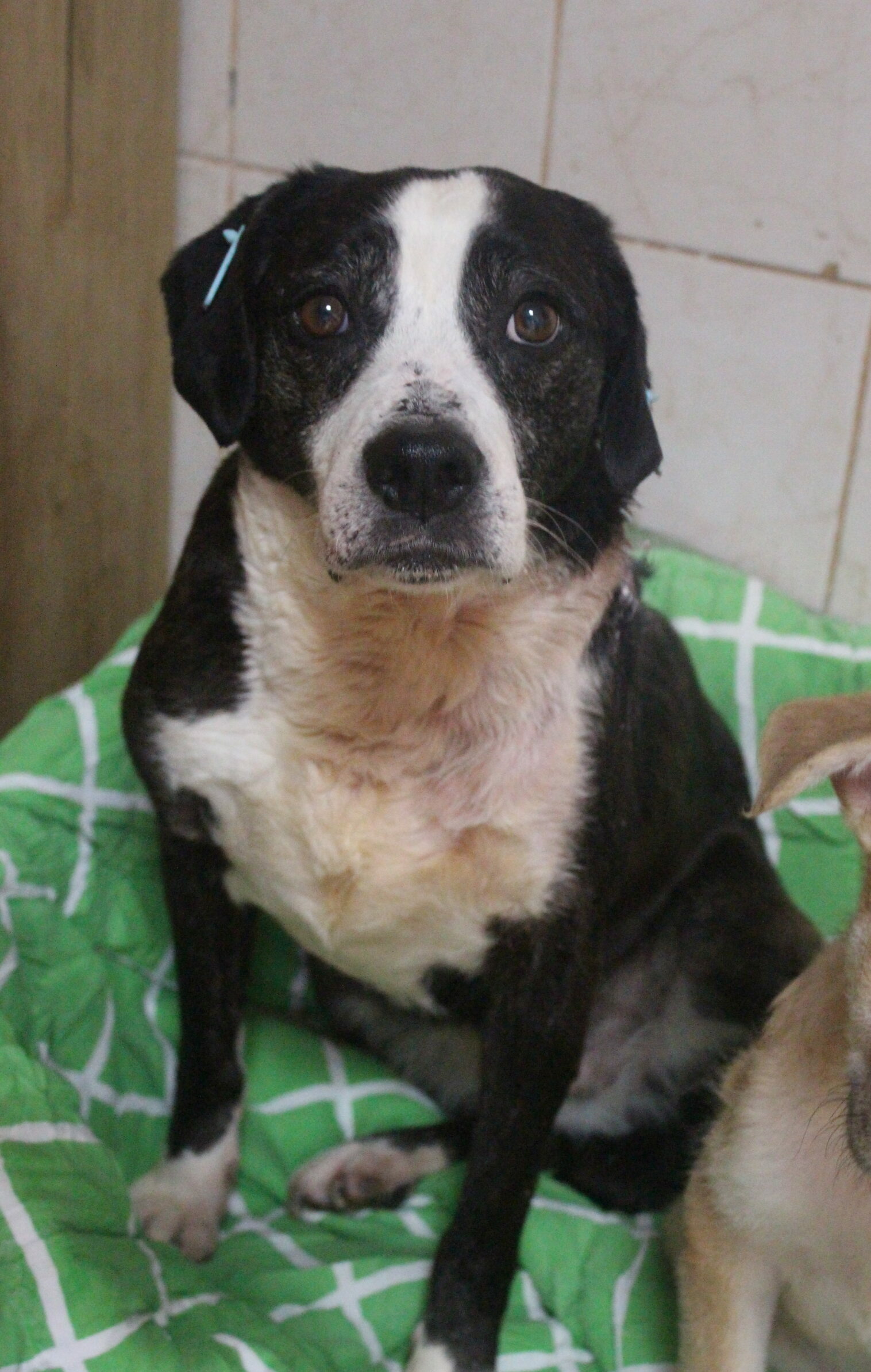 ZAZA sitzt nach wie vor mit der großen Bisswunde am Nacken im Haus und ist in Behandlung. Sie zeigte sich uns gegenüber sehr ruhig und lieb und ließ sich auch gut anfassen. Sie lebt mit einer gemischten Gruppe aus jungen und alten Hunden in einem Zimmer und ist mit allen sehr nett.